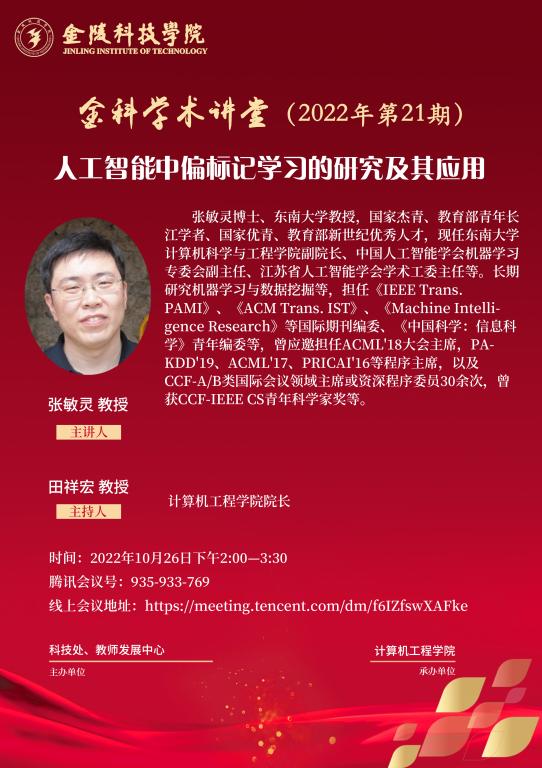 关于举行线上“金科学术课堂—人工智能中偏标记学习的研究及其应用”学术报告的通知