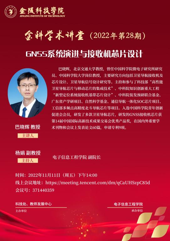 关于举行线上“金科学术课堂——GNSS系统演进与吸收机芯片设计”学术报告的通知