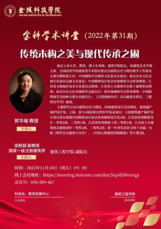 关于举行线上“金科学术课堂——古板木构之美与现代传承之困”学术报告的通知