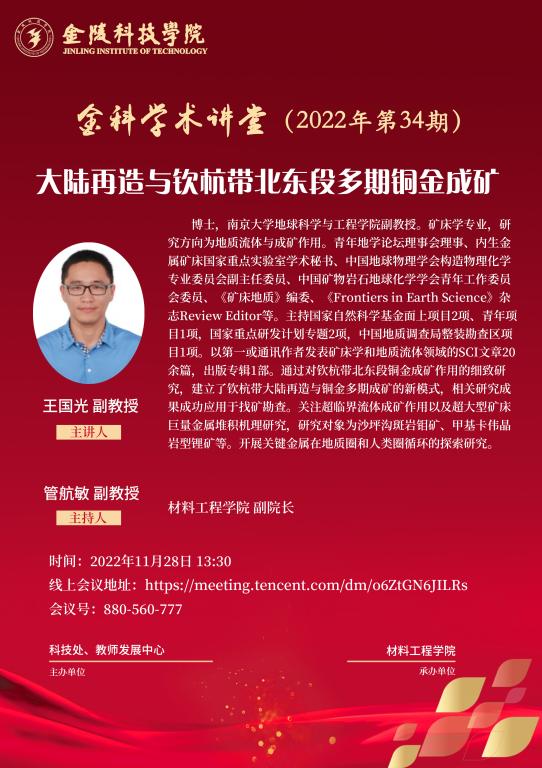 关于举行线上“金科学术课堂——大陆再造与钦杭带北东段多期铜金成矿”学术报告的通知