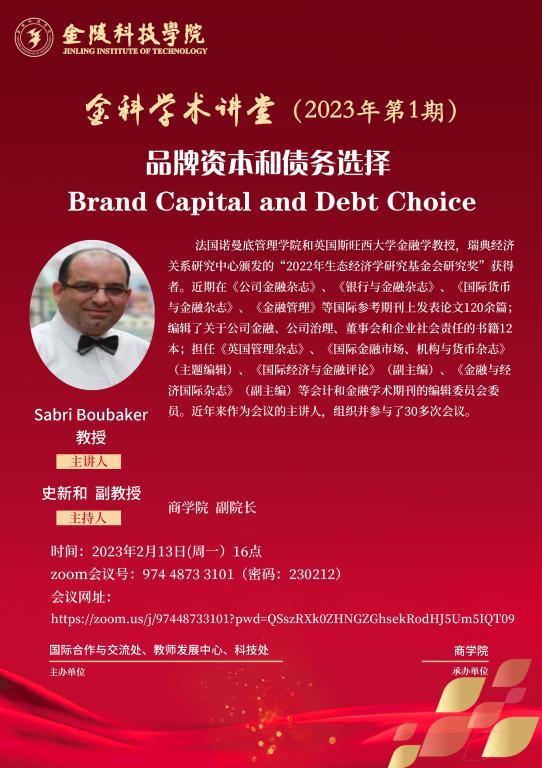 关于举行线上“金科学术课堂——品牌资源和债务选择 Brand Capital and Debt Choice”学术报告的通知