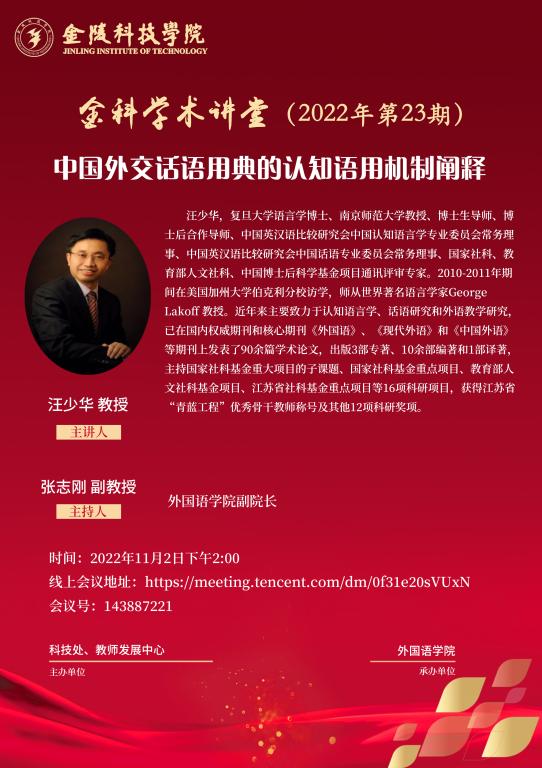 关于举行线上“金科学术课堂—中外洋交话语用典的认知语用机制阐释”学术报告的通知