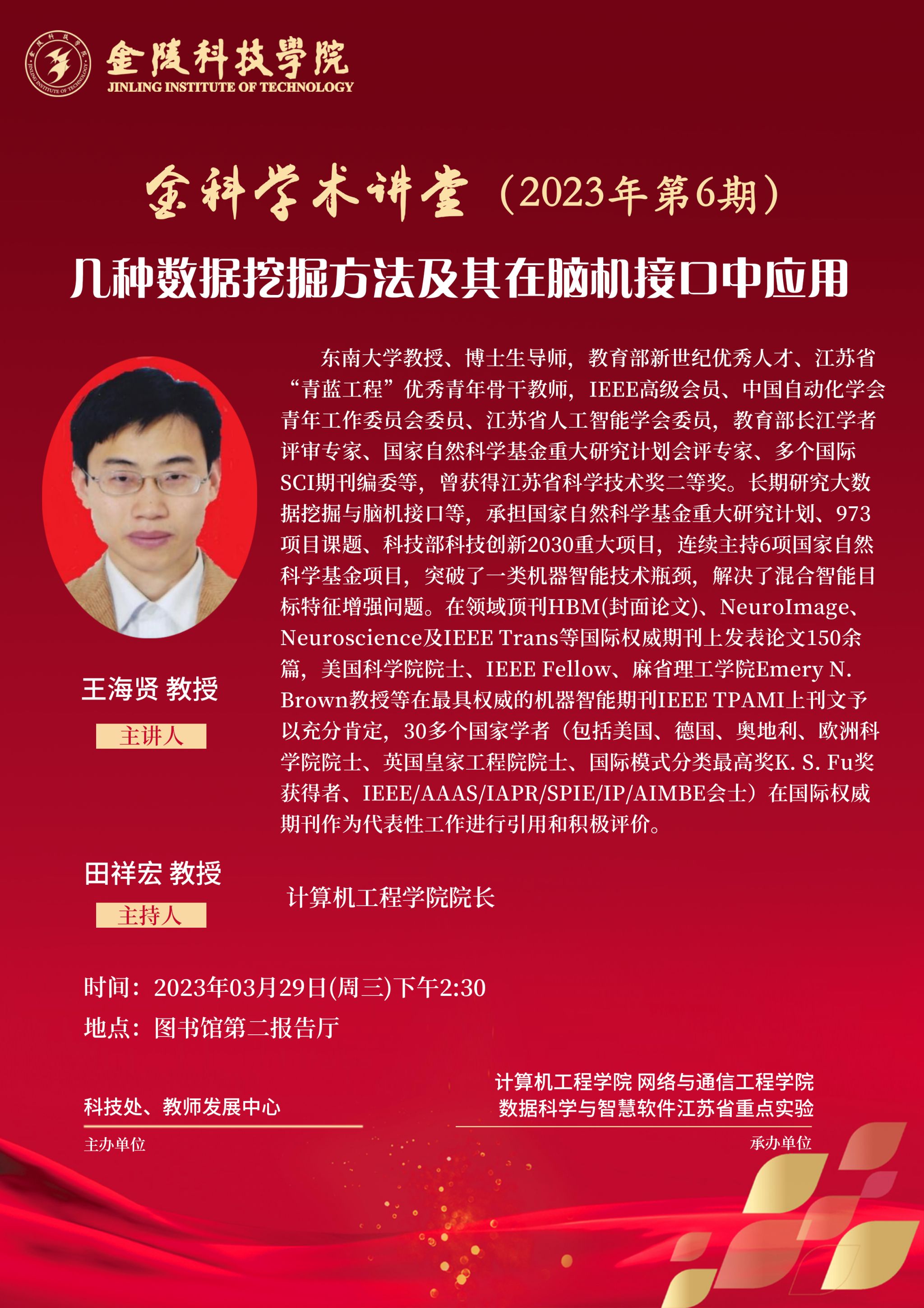 关于举行线下“金科学术课堂——几种数据挖掘要领及其在脑机接口中应用”学术报告的通知