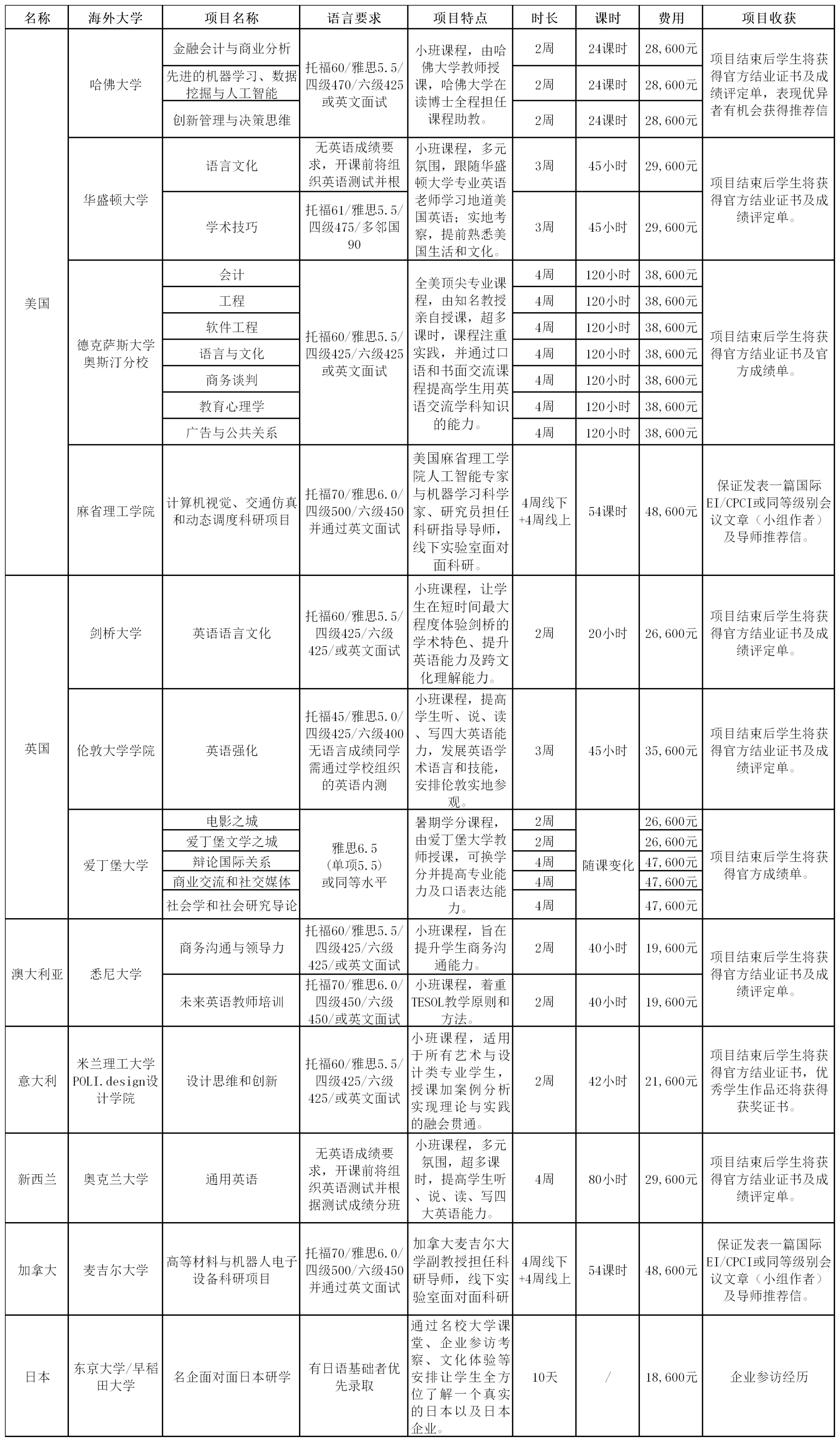 为增添我校学生国际课程学习体验,,,,,获得更多外洋交流学习时机,,,,,现开展2023年暑期哈佛大学等天下名校线下项目报名事情,,,,,详细通知如下: