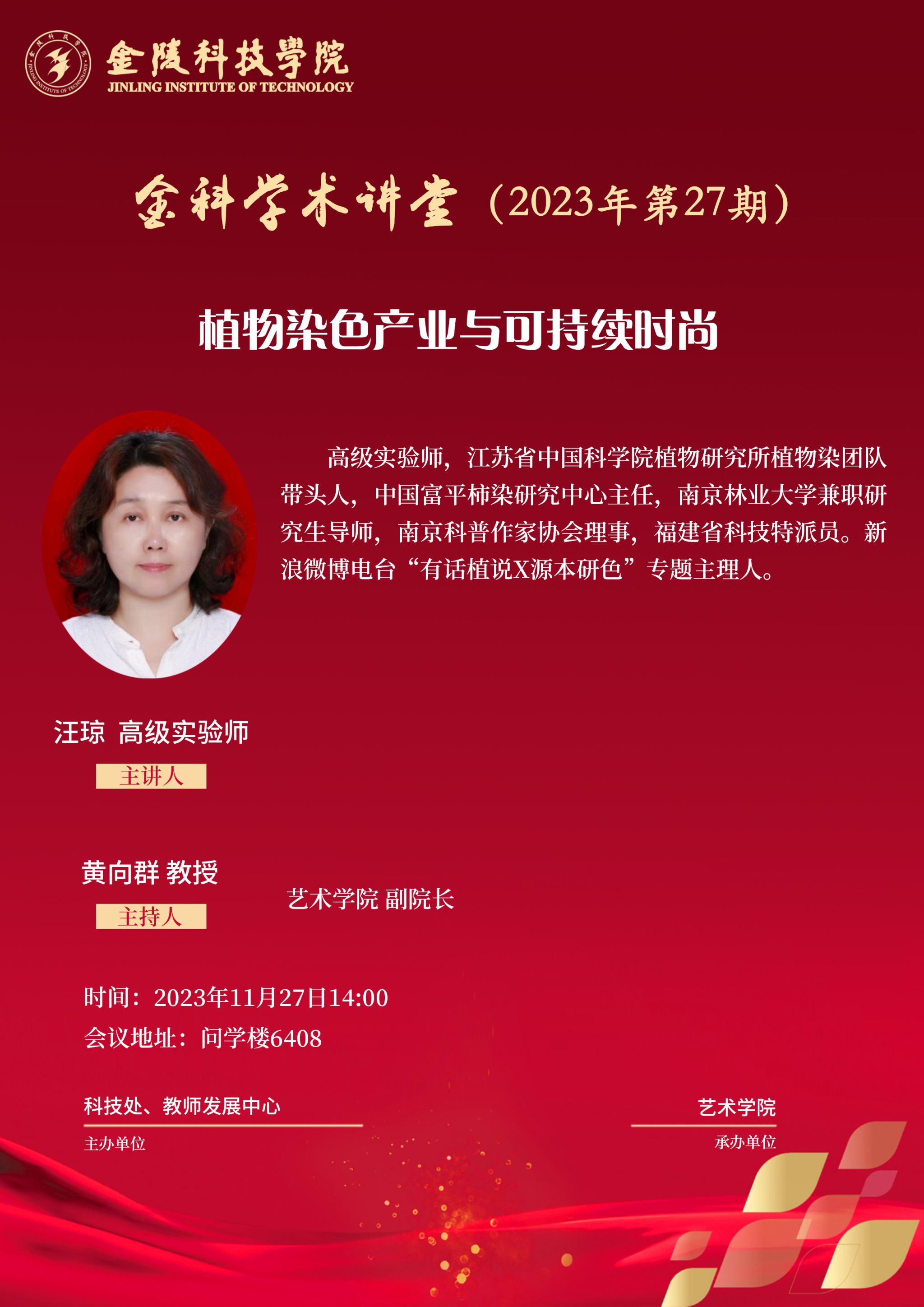 关于举行“金科学术课堂——植物染色工业与可一连时尚”学术报告的通知