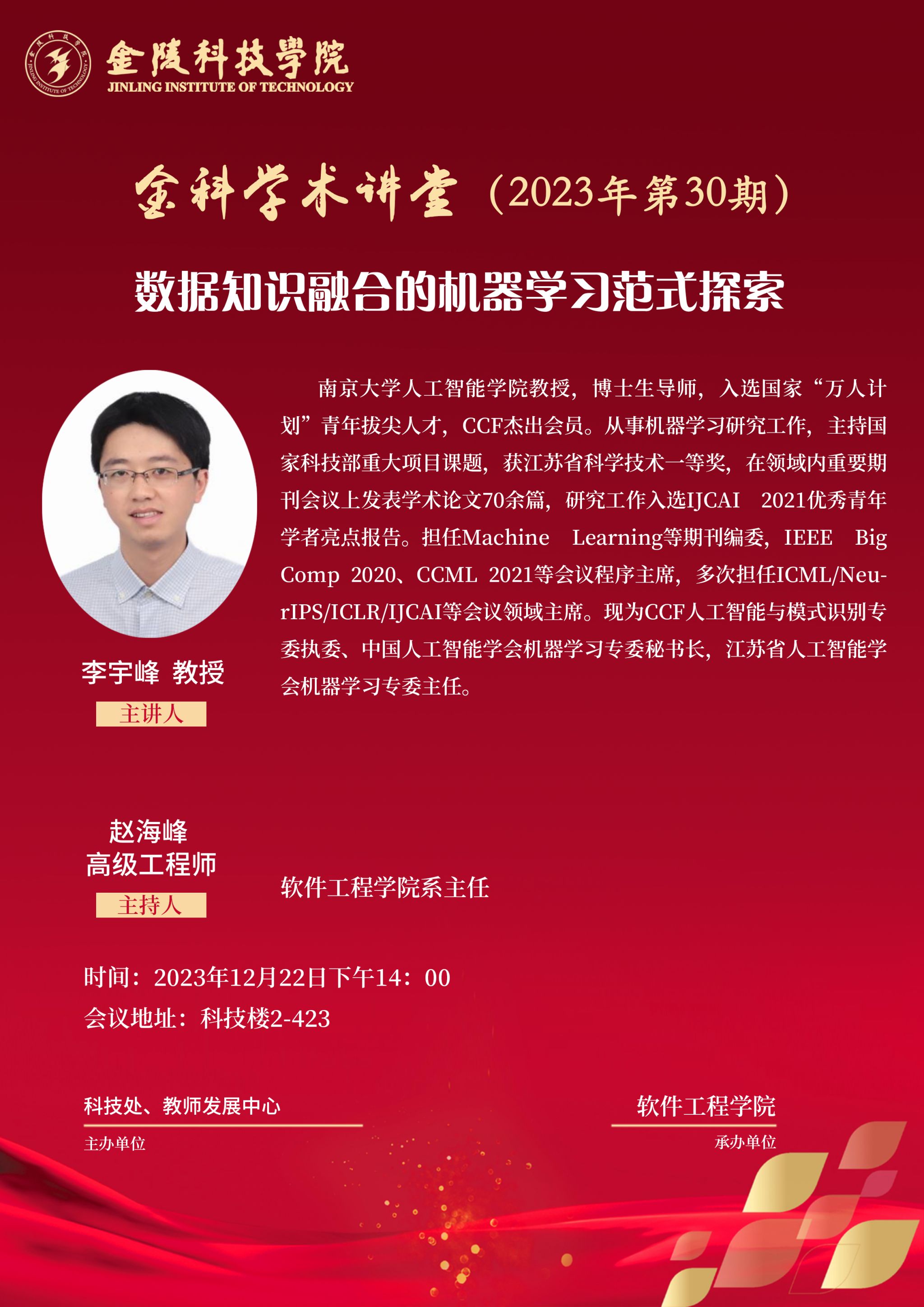 关于举行“金科学术课堂——数据知识融合的机械学习范式探索”学术报告的通知