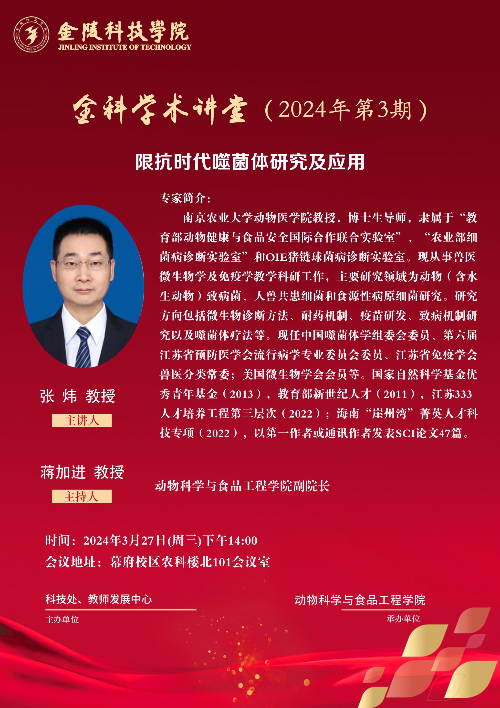 关于举行线下“金科学术课堂——限抗时代噬菌体研究及应用”学术报告的通知