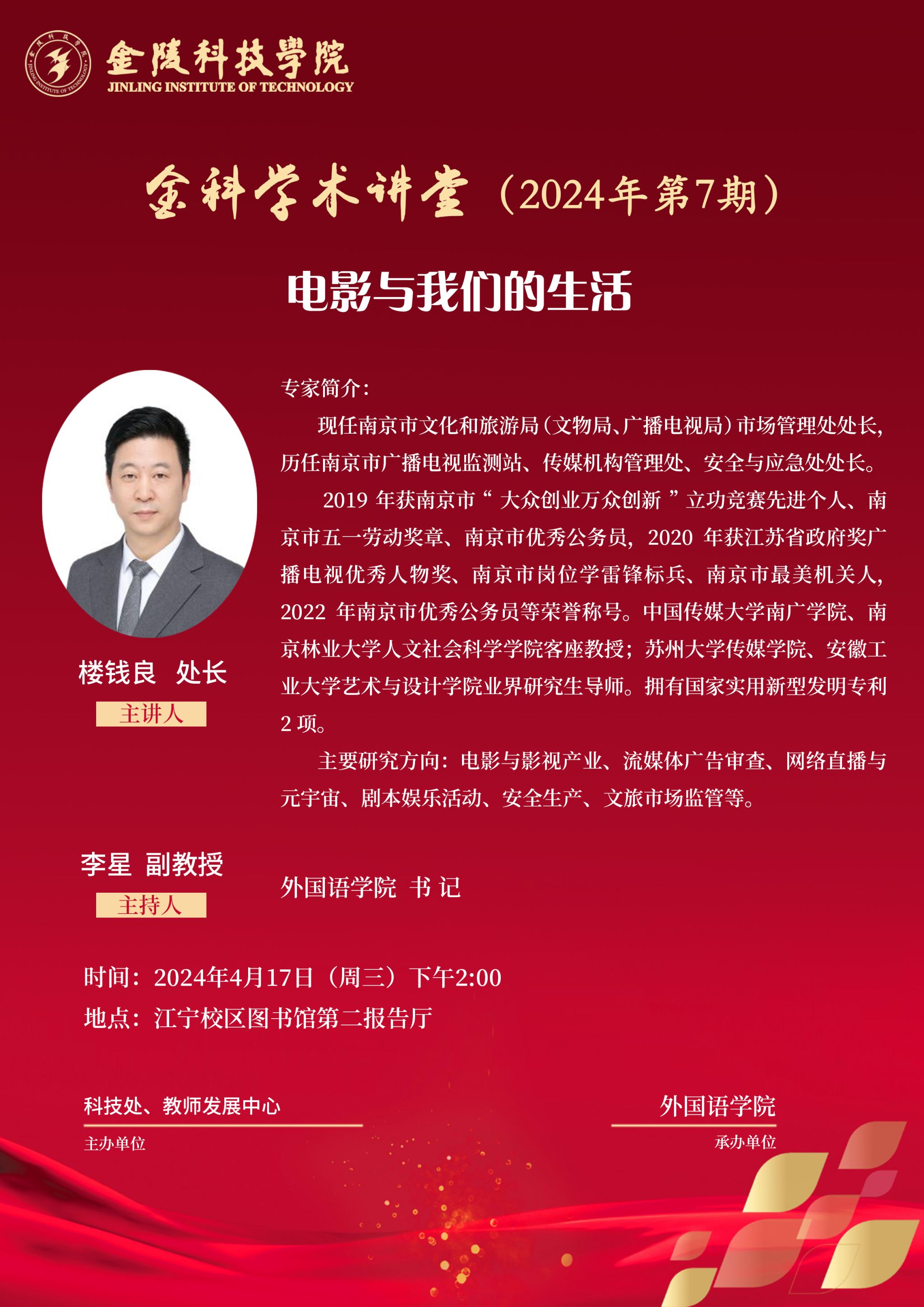 关于举行线下“金科学术课堂——影戏与看个球app官网生涯”学术报告的通知