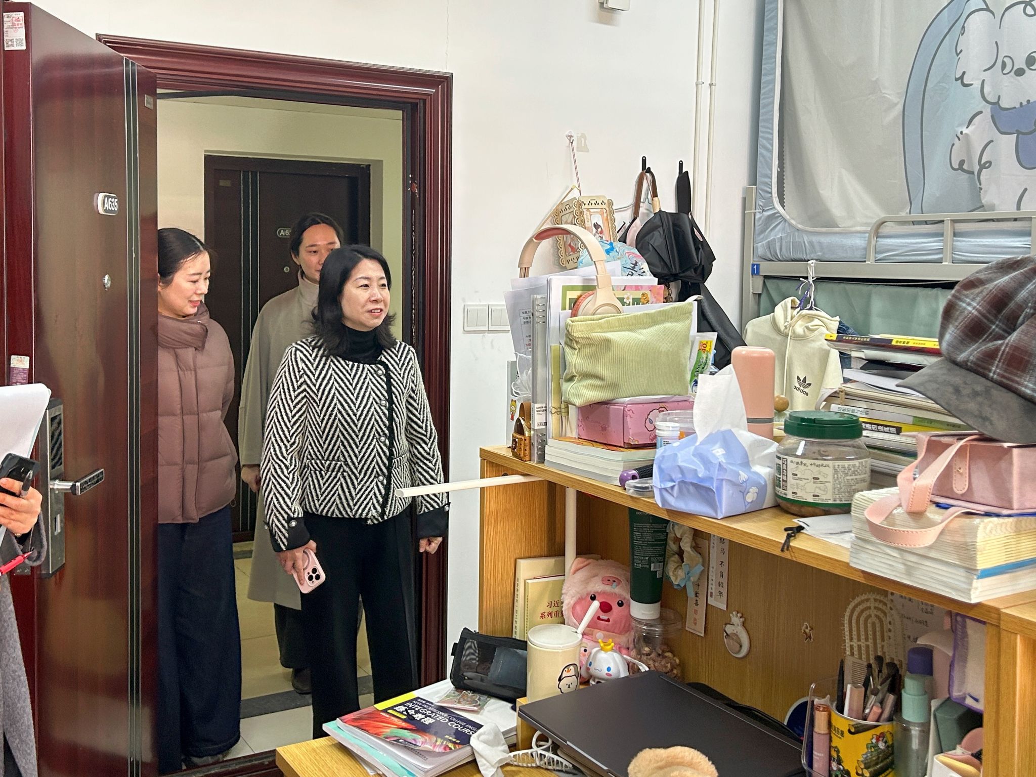 期末邻近,,,,,,,,为了进一步相识学生的学习生涯情形,,,,,,,,转达学校的眷注与温暖,,,,,,,,营造优异的期末温习气氛,,,,,,,,动漫学院于1月3日组织了一次宿舍走访运动。。。。。。。学院党总支部书记赵宁向导全体向导员走访了北区03栋8人世等学生宿舍,,,,,,,,以现实验动体贴学生,,,,,,,,为他们的学业和生涯保驾护航。。。。。。。