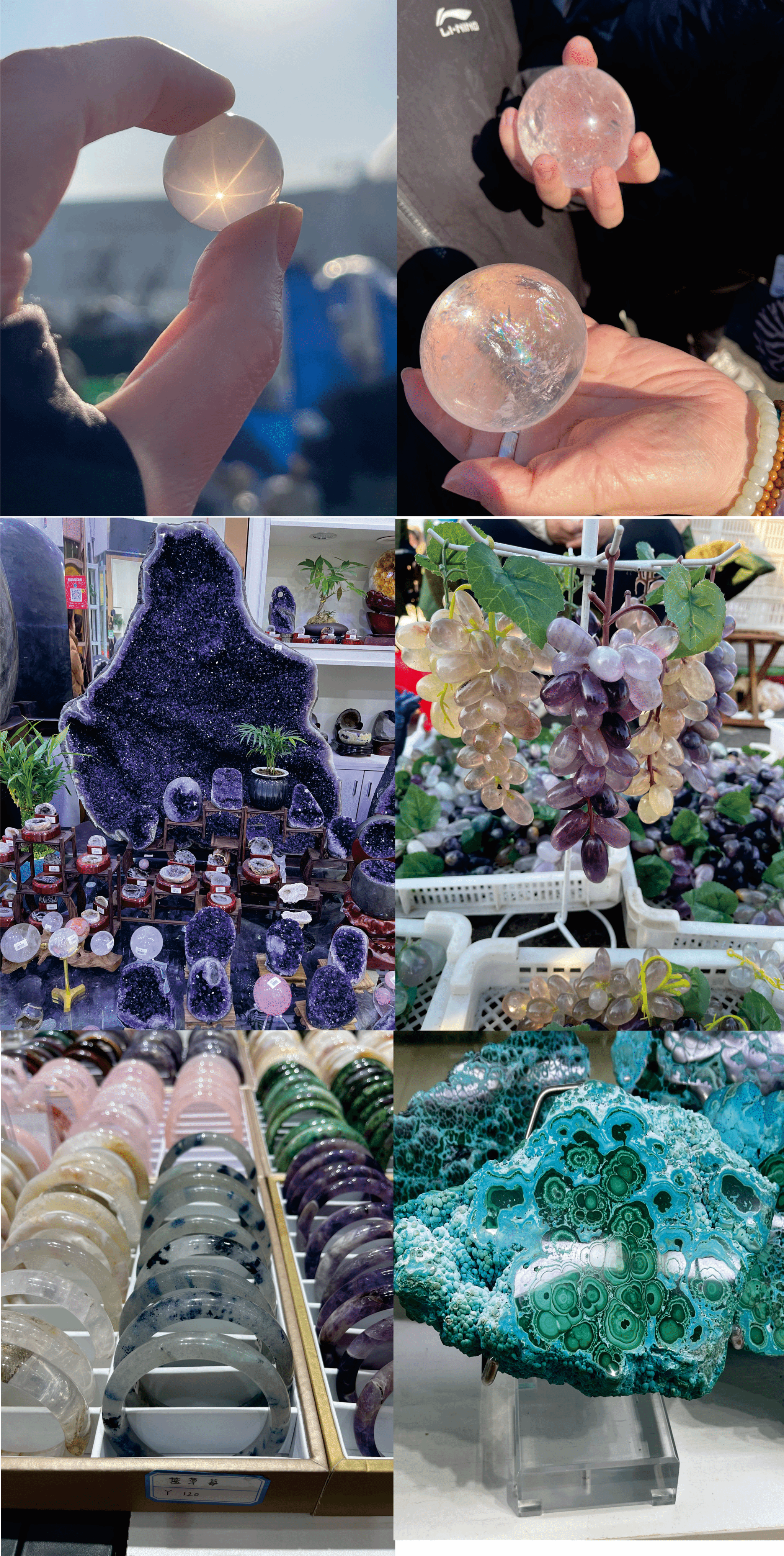 一进入水晶城,,,,,,,,同砚们就被热闹的生意场景所吸引。。。。。原石摊、手串摊、工艺品摊等琳琅满目,,,,,,,,红兔毛、绿幽灵、福禄寿等种种水晶品种让人眼花缭乱。。。。。同砚们分组行动,,,,,,,,与商户们举行了深入的交流。。。。。他们询问水晶的产地、品质、价钱等问题,,,,,,,,相识水晶的市场行情和销售渠道。。。。。商户们也很是热情,,,,,,,,耐心地解答同砚们的问题,,,,,,,,并分享了自己在水晶谋划历程中的履历和故事。。。。。有的同砚还现场学习了怎样挑选水晶原石和制品,,,,,,,,怎样区分水晶的优劣和真伪。。。。。别的,,,,,,,,水晶城的跨境直播也吸引了同砚们的眼光,,,,,,,,他们寓目了主播们的直播历程,,,,,,,,学习了怎样团结水晶和宝石类产品的特点举行线上销售。。。。。