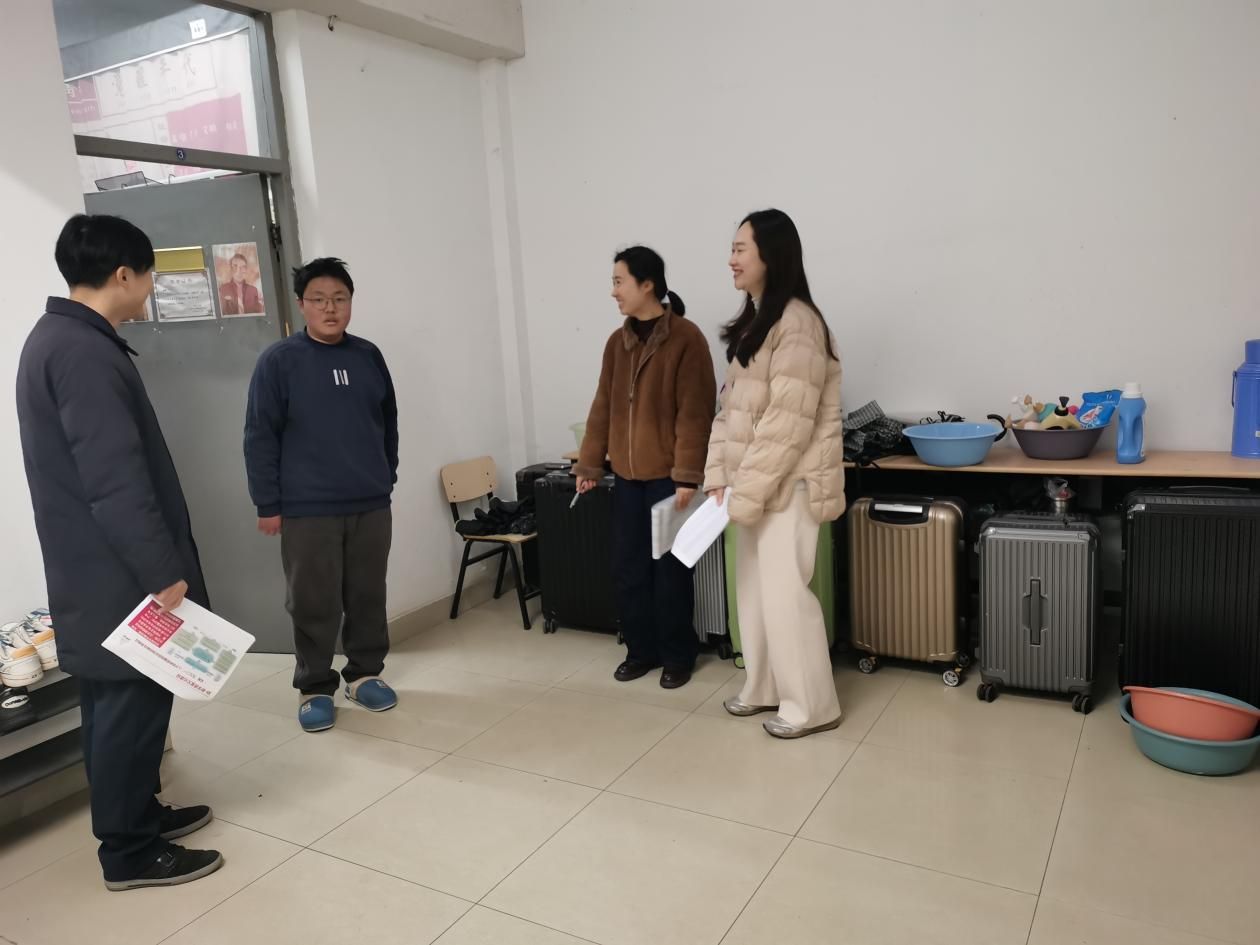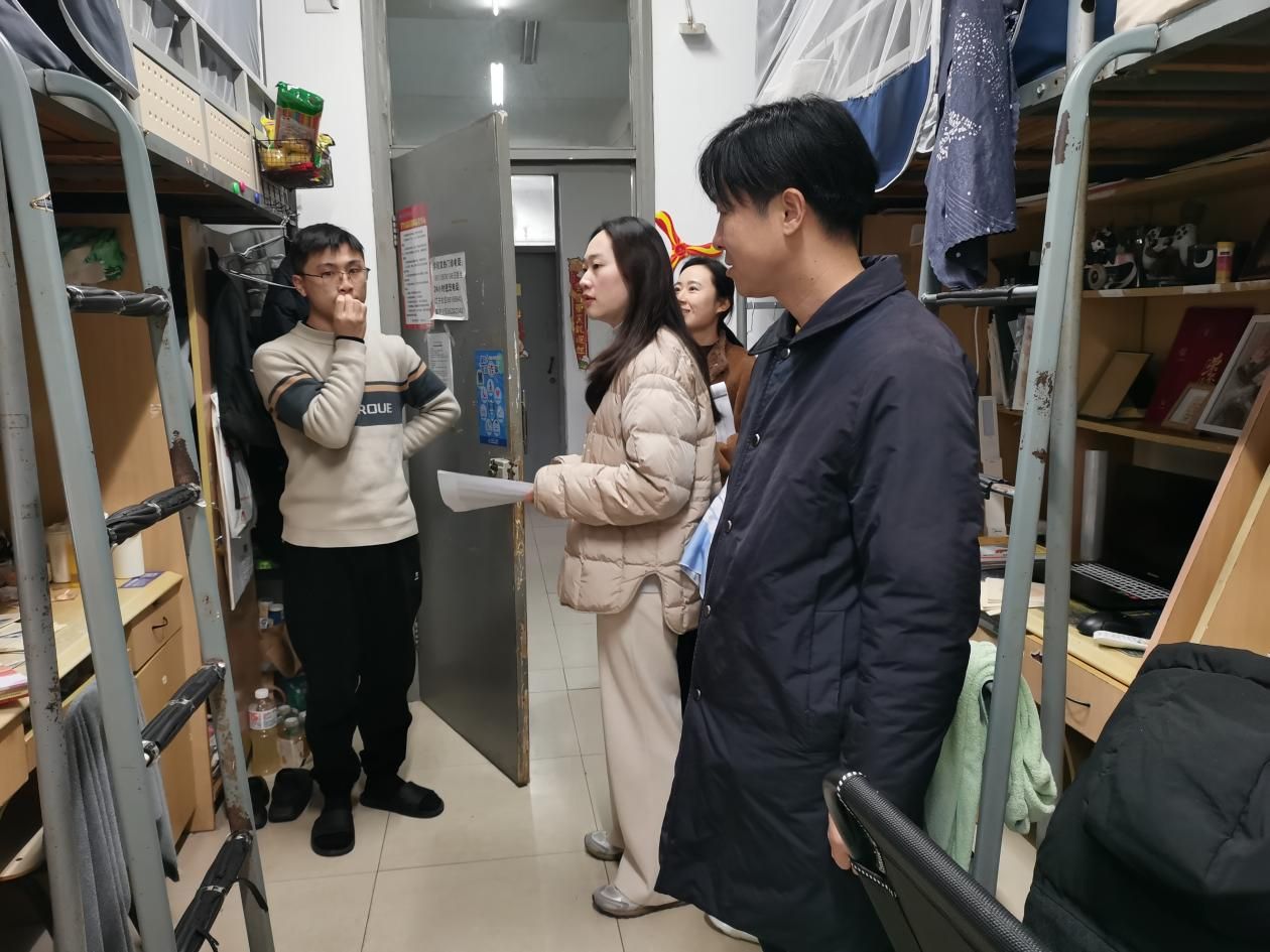 走访历程中,,,,,,,,向导员们与同砚们亲热攀谈,,,,,,,,详细相识同砚们的寒假生涯、学习情形和返校历程,,,,,,,,耐心解答同砚们关于新学期课程安排、生涯包管等方面的疑问。。。。。。。同时,,,,,,,,向导员们还嘱咐同砚们要尽快调解作息,,,,,,,,以饱满的精神状态投入到新学期的学习生涯中;;;;;;;;要注重宿舍清静,,,,,,,,杜绝违章电器,,,,,,,,坚持宿舍卫生,,,,,,,,营造优异的学习生涯情形;;;;;;;;要制订新学期的学习妄想,,,,,,,,明确目的,,,,,,,,起劲提升自身综合素质。。。。。。。