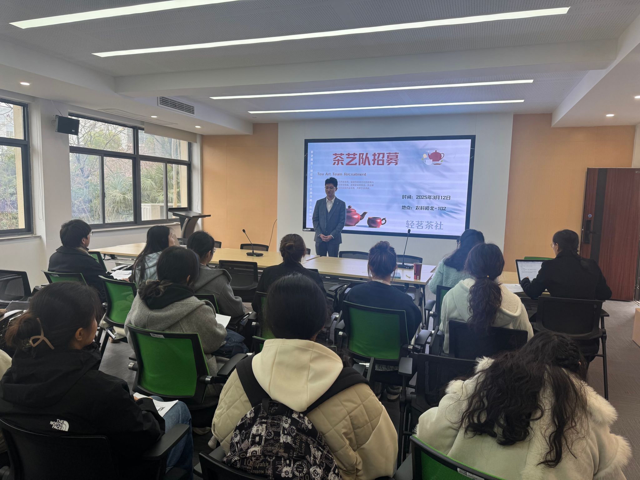 3月12日,,,,,,,,园艺园林学院茶艺队“轻茗”茶社茶艺队纳新运动在农科楼北102聚会室顺遂举行。。。。。。。园艺园林学院茶学副教授董瑞霞、设施系系主任闫娜、24 级向导员张胜男出席了本次运动,,,,,,,,配合见证了茶艺队注入新鲜血液的主要时刻。。。。。。。