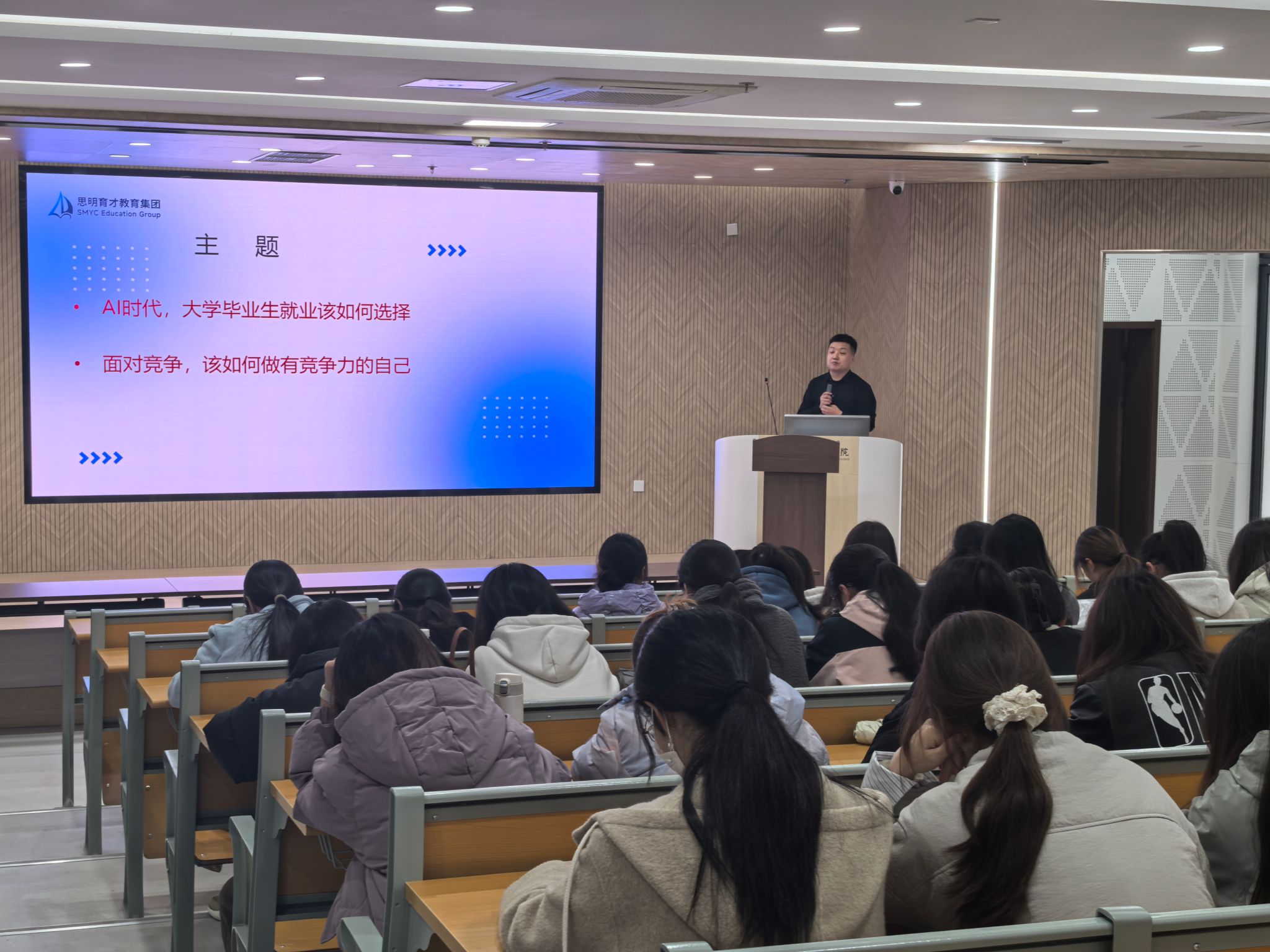目今,,,,,,,AI手艺飞速生长,,,,,,,深刻影响着就业市场名堂,,,,,,,大学生在面临职业选择时充满疑心。。。。。。在此配景下,,,,,,,思明育才教育集团的高向东、李健两位讲师划分围绕《AI时代,,,,,,,大学结业生就业该怎样选择》《面临竞争,,,,,,,该怎样做有竞争力的自己》两大主题睁开详细解说。。。。。。