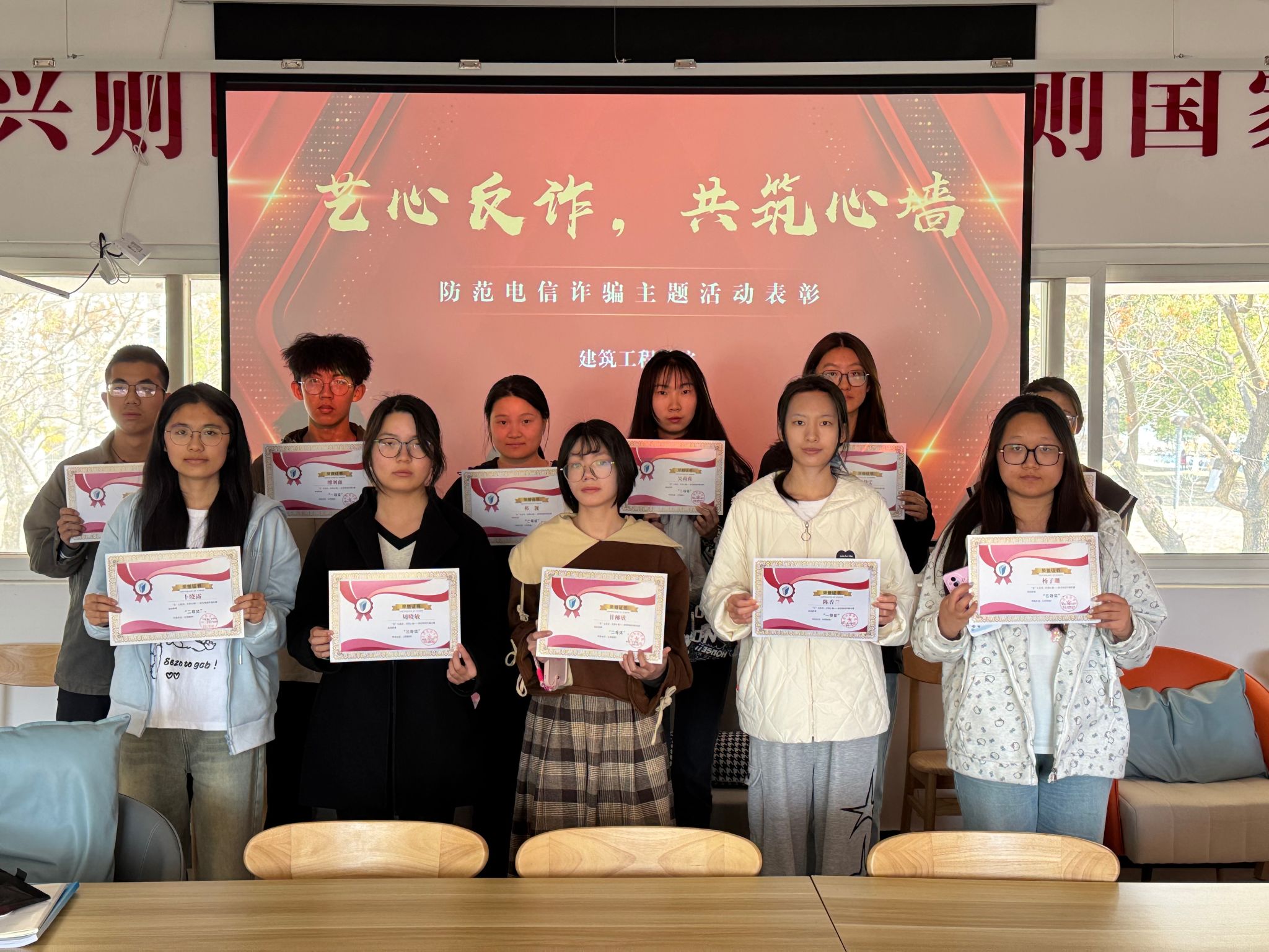 为进一步增强学生提防电信网络诈骗的意识,,,,,,立异反诈宣传形式,,,,,,营造校园清静文化气氛,,,,,,修建工程学院于4月3日在南区08栋一站式学生社区举行“艺心反诈,,,,,,共筑心墙”为主题的反诈创意作品征集评选运动。。。。。。。