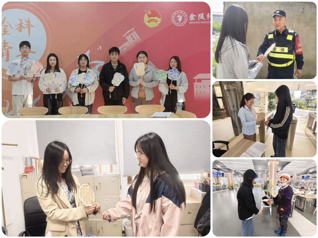 运动尾声,,,,,同砚们将数十柄竹编扇与漆扇全心包装,,,,,附上“匠心传承”“劳动庆幸”手写贺卡,,,,,赠予先生、保安、宿管员、食堂后勤等校园劳动者。。。。。。竹扇的清雅与漆扇的绚烂相映成趣,,,,,形成一道亮丽的景物线。。。。。。