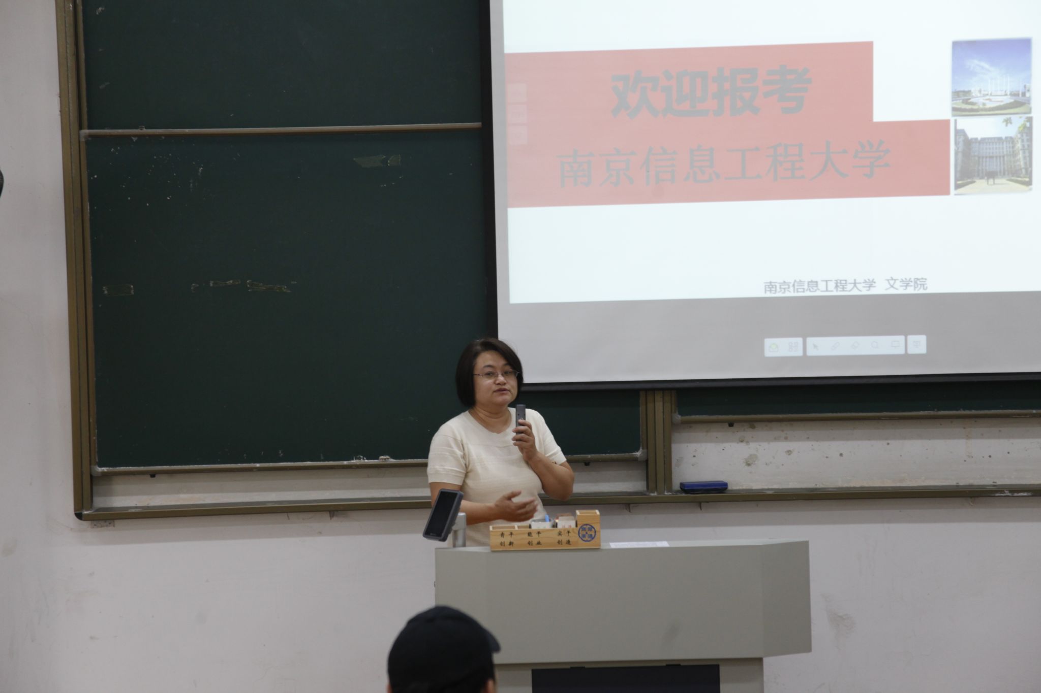 5月29日上午,,,,,在幕府校区农科楼113课堂,,,,,人文学院约请南京信息工程大学文学院举行了2026年研究生招生宣讲会。。。。。。。。人文学院党委副书记董宇、副院长赵步阳,,,,,南京信息工程大学文学院党委书记郭雨、中国语言文学专业认真人庞秀慧先生、国际中文教育专业认真人徐开妍先生以及校友贺宁同砚出席。。。。。。。。院2022级70余名学生加入了宣讲运动。。。。。。。。