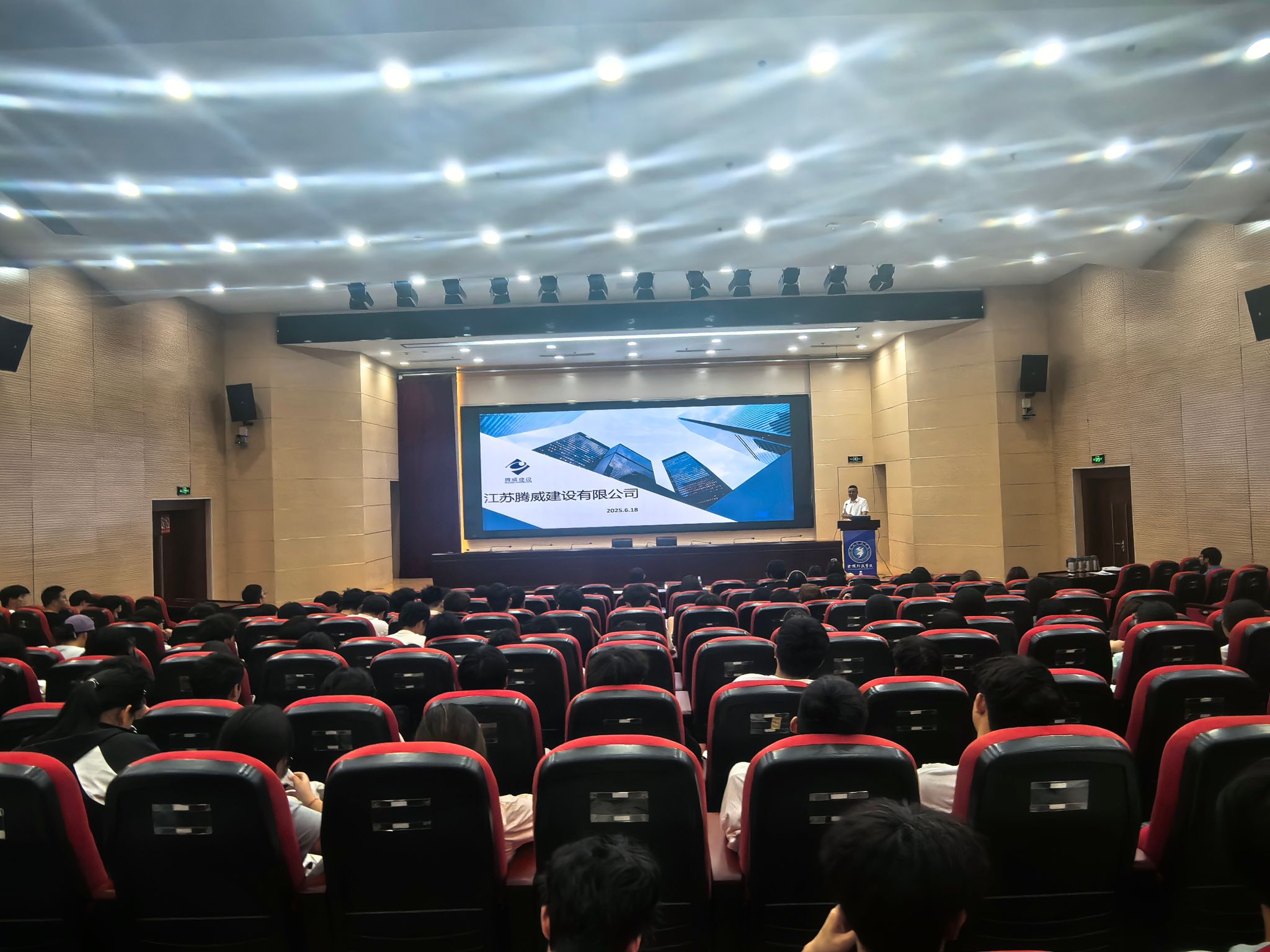 江苏腾威建设有限公司总司理茆金林向师生们周全先容了腾威建设的生长历程、焦点营业、企业人才需求、员工职业生长妄想等方面内容。。。。。。。他重点剖析了目今修建行业对高素质应用型人才的迫切需求,,,,,,,特殊是对具备扎实专业手艺、优异职业素养和强烈立异意识人才的青睐。。。。。。。茆总热情洋溢地叙述了本次校企相助的详细模式与辽阔远景,,,,,,,包括共建实习实践基地、设立专项奖学金、提供优先就业岗位等多项务执行动。。。。。。。他代表公司向建工学子发出真挚约请,,,,,,,期待更多优异人才加入腾威,,,,,,,与企业共生长。。。。。。。宣讲竣事后,,,,,,,茆金林总司理还与现场学生举行了深入互动,,,,,,,耐心解答了关于职业生长、岗位要求等热门问题。。。。。。。