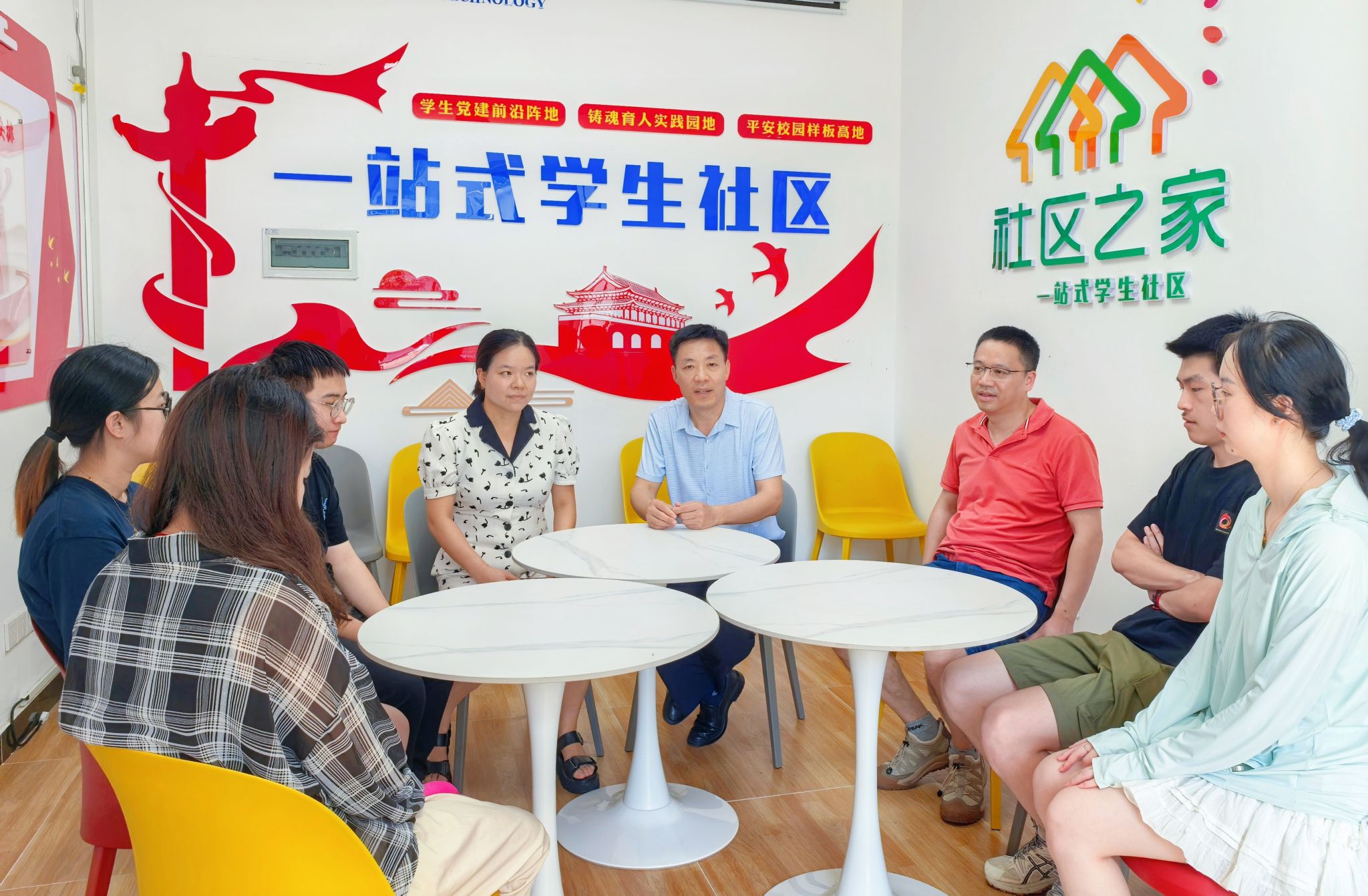 7月2日上午,,,,,,,动科学院在幕府校区三栋“一站式”学生社区运动中心召开“筑牢清静防地 护航考研征程”一站式社区座谈会。。。。。。。。学院副院长蒋加进、副院长罗羽洧出席,,,,,,,向导员吴旖旎、周秀丽和部分暑期留校学生代表等10人加入。。。。。。。。