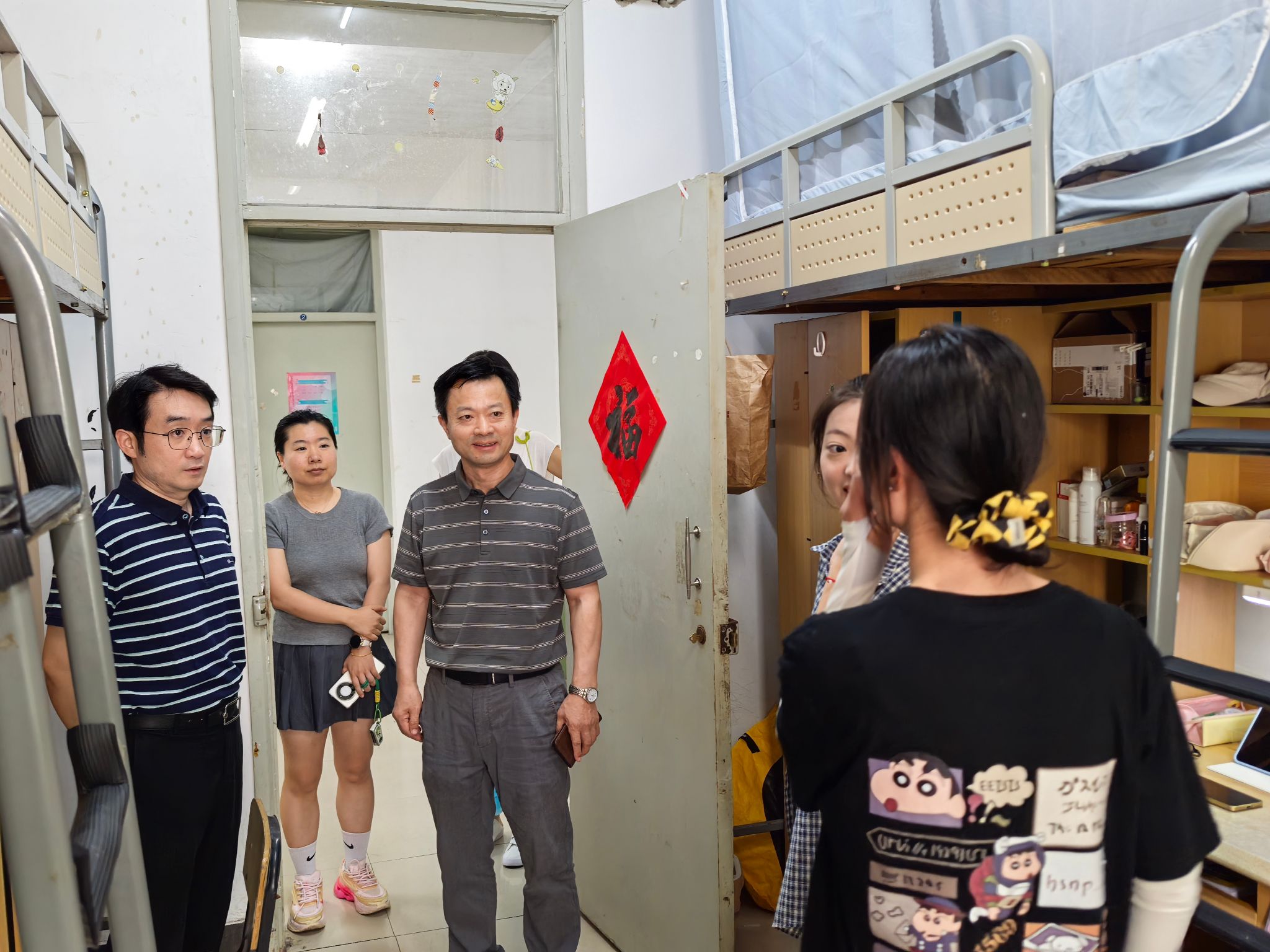 慰问组逐一走访南北区学生睡房、电商直播实验室,,,,,,,,与留校备考研究生、公务员及加入实习的学生亲热交流。。。。。。。院向导详尽询问同砚们的温习进度与实习安排,,,,,,,,嘱咐各人注重防暑降温,,,,,,,,并送上清凉慰问品。。。。。。。针对近期社会关注的清静生产事务,,,,,,,,郑重强调:“清静是一切生长的条件,,,,,,,,无论在校学习照旧外出实践,,,,,,,,必需将人身清静放在首位。。。。。。。”要求同砚们严守宿舍用电规范、小心实习危害、增强防诈骗意识,,,,,,,,特殊提醒实习学生逐日向向导员报备行程,,,,,,,,遇险情连忙响应。。。。。。。