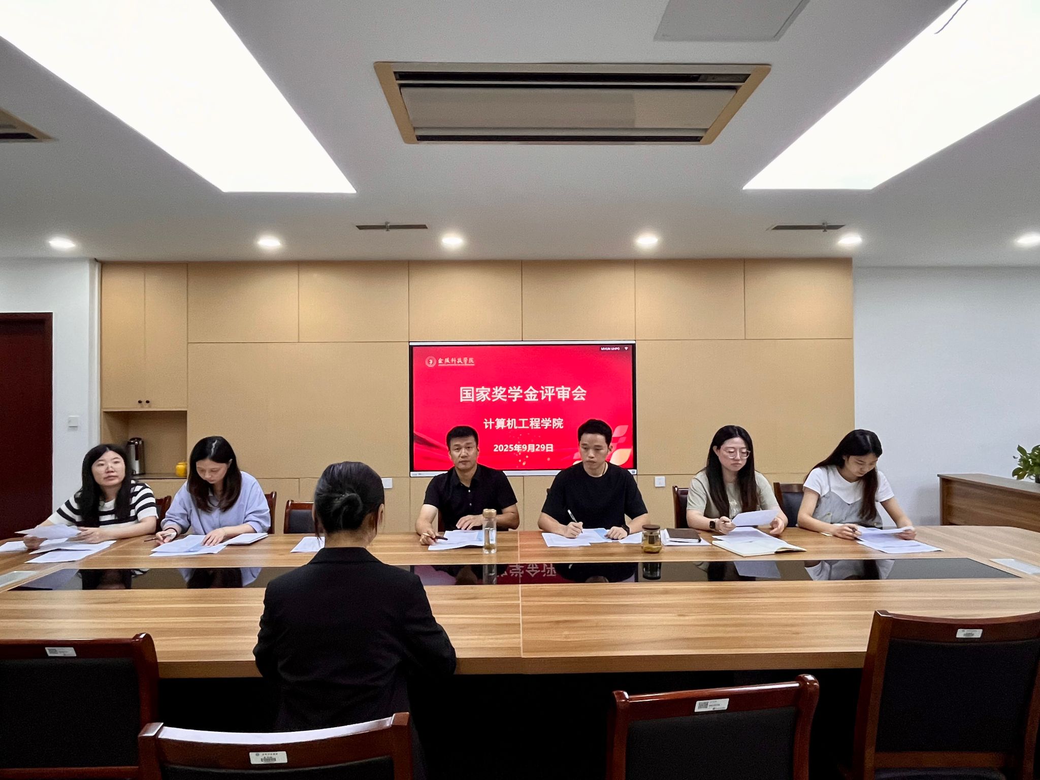 9月29日,,,,,盘算机工程学院于科技楼2号楼523聚会室召开国家奖学金候选人评审会,,,,,对学院内切合评选条件的10名候选人举行综合评议。。。。。。