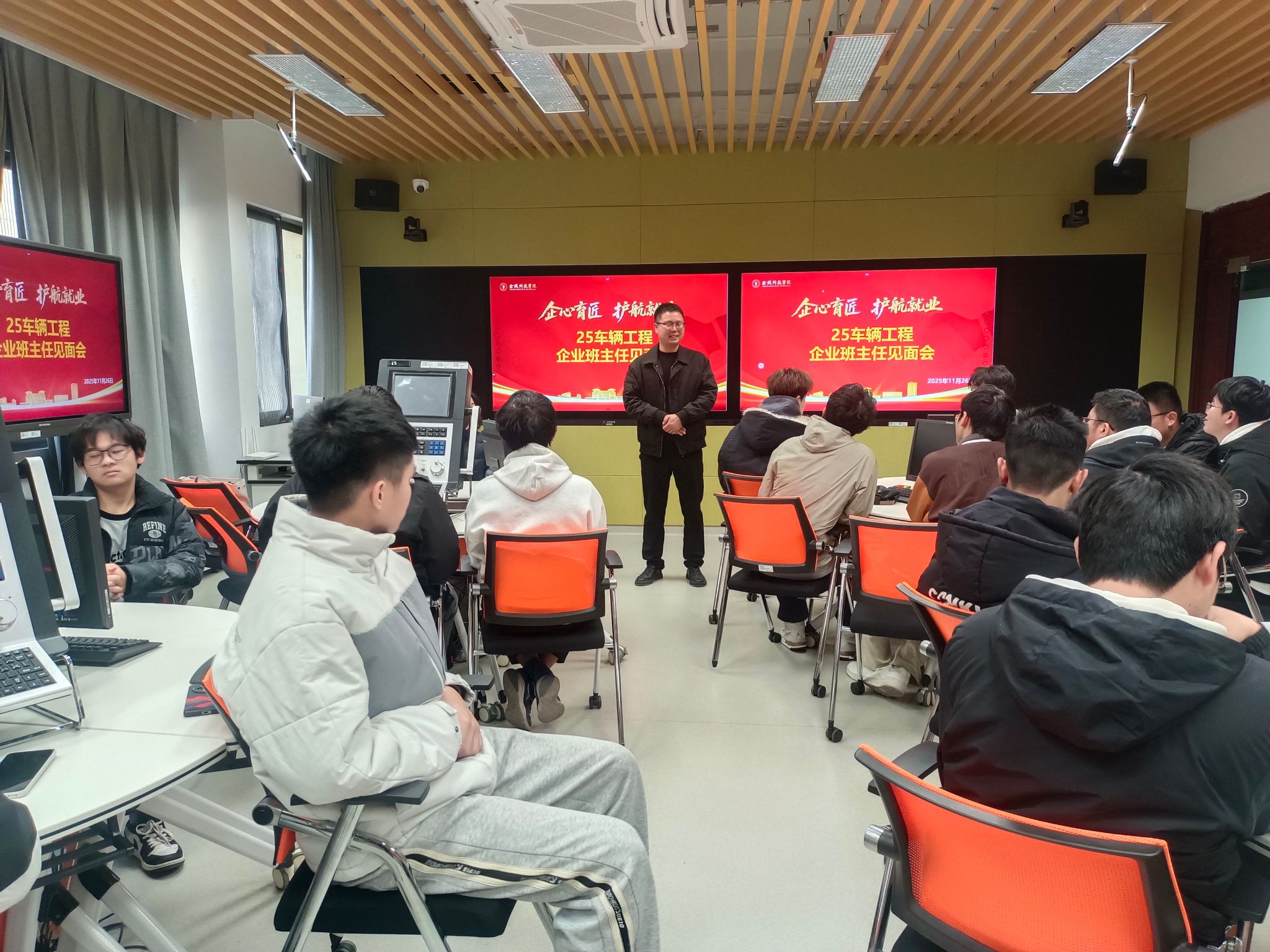 会后,,,,,,,企业班主任们与所带的2025级学生开展了晤面交流会,,,,,,,为学生解疑答惑,,,,,,,指点迷津。。。。。