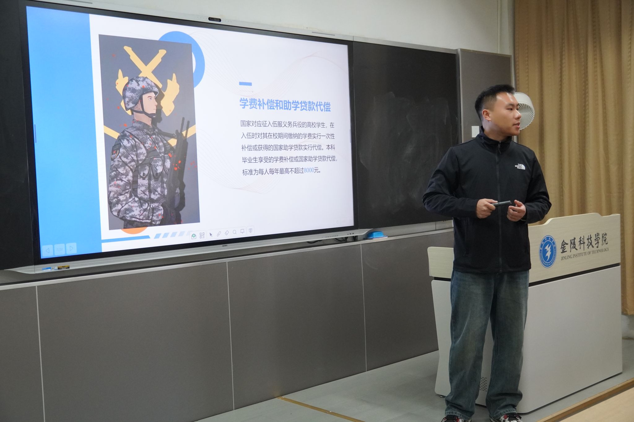 为响应国家征兵招呼,,,,,,,勉励大学生携笔参军投身国防建设,,,,,,,11月28日下昼,,,,,,,人文学院在幕府校区教学楼112举行了征兵政策宣讲会暨退役士兵参军故事分享会。。。。。。。宣讲会由人文学院征兵事情认真人汪新先生主持,,,,,,,约请24旅游治理(专转本)班韩立伟作为退役同砚代表,,,,,,,通过政策解读、履历分享、现场答疑等形式,,,,,,,睁开了宣媾和分享。。。。。。。