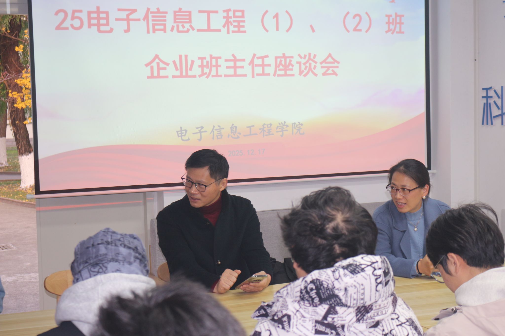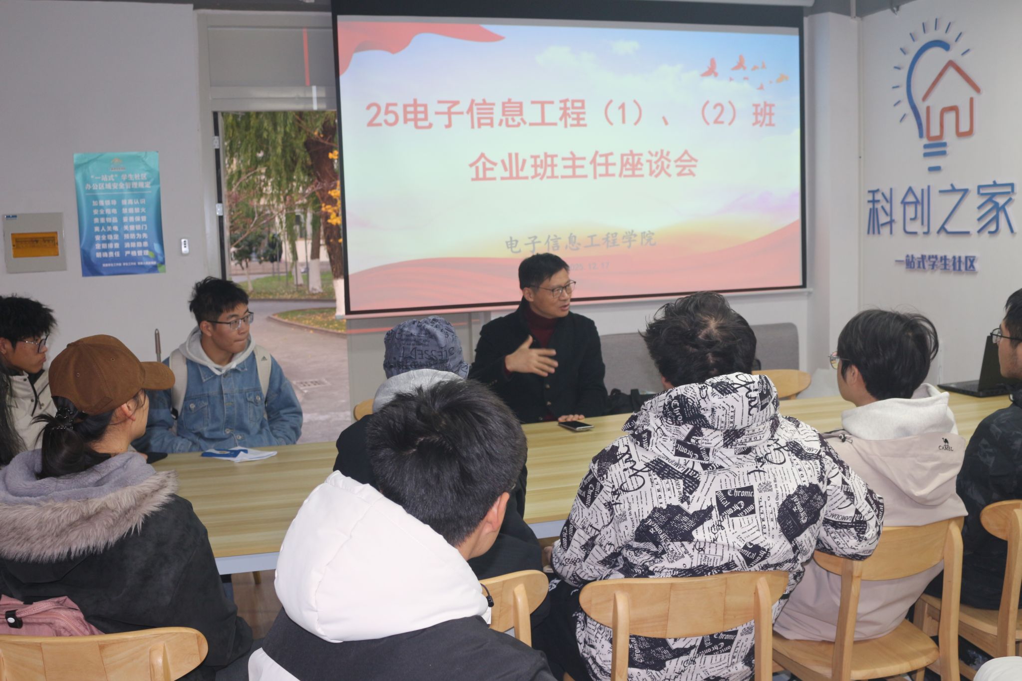12月17日下昼四点,,,,,电子信息工程学院企业班主任、南京优奈特信息科技有限公司董事长林新华应邀到北区02栋一站式开展了一场独具匠心的师生座谈会,,,,,电信学院党委副书记陈智慧、25电子信息工程信息(1)(2)班学生代表欢聚畅聊。。。。。