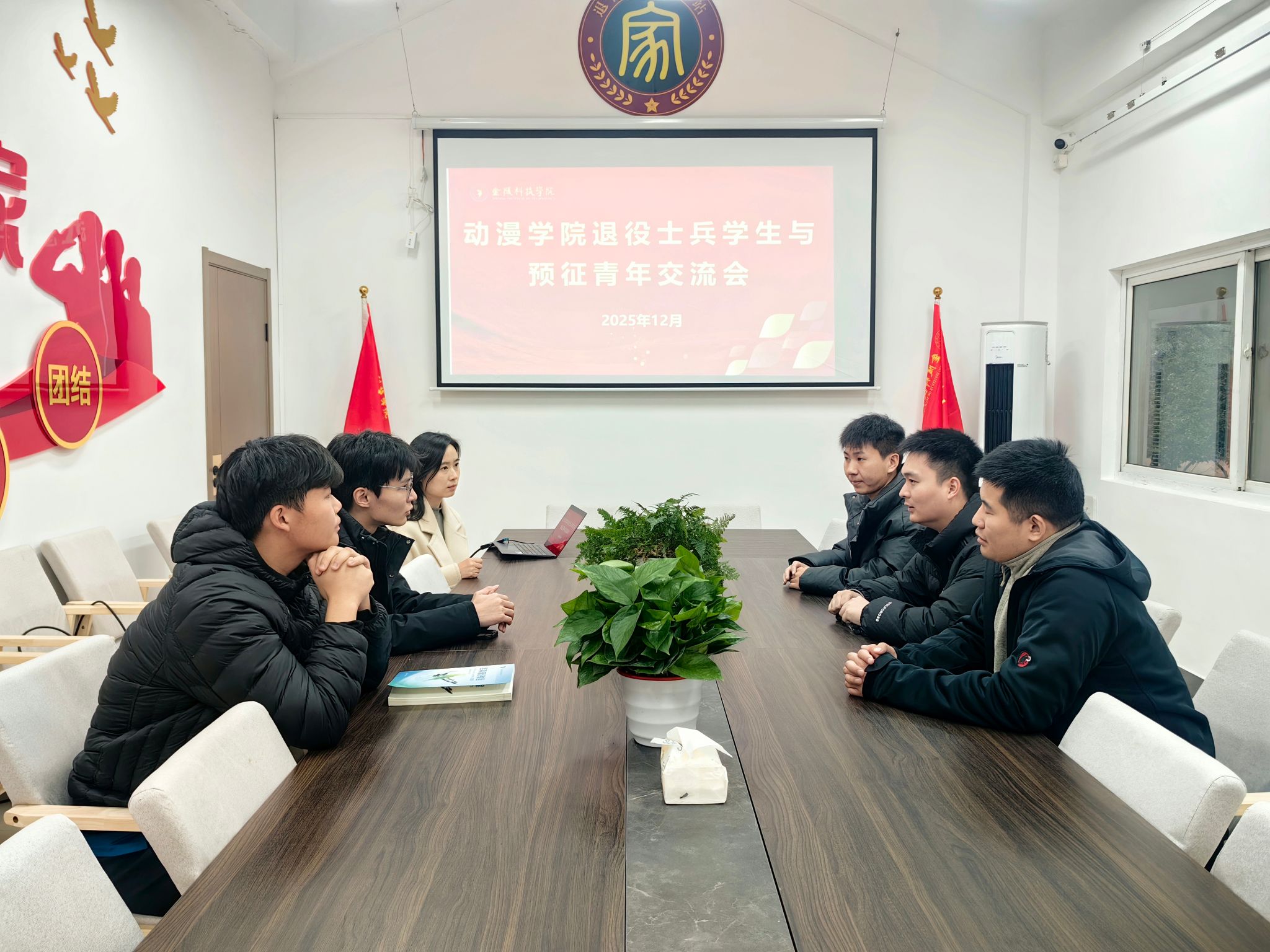 为搭建退役士兵学生与在校应征青年之间的相同桥梁,,,,,,,,施展模范引领作用,,,,,,,,12月24日下昼,,,,,,,,动漫学院在南区02栋“一站式”学生社区举行了退役士兵学生与应征青年交流分享会。。。。。。。