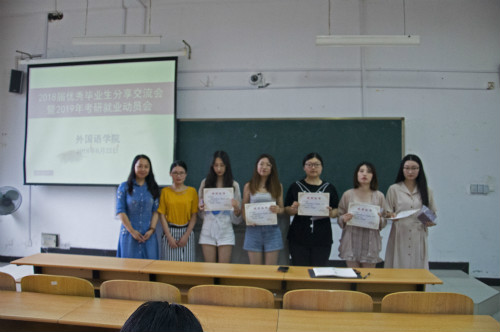 为增强对学生大学生涯妄想及职业生涯妄想的指导,,,,,,增强学生对考研及就业的熟悉,,,,,,引发学生的起劲进取精神,,,,,,外国语学院于克日在5109课堂开展2018届优异结业生表扬大会暨考研、就业分享交流会。。。。。。加入本次交流会的有外国语学院党总支副书记李星,,,,,,向导员胡笛,,,,,,外国语学院18届数位优异的结业生同砚及15、16级学生。。。。。。