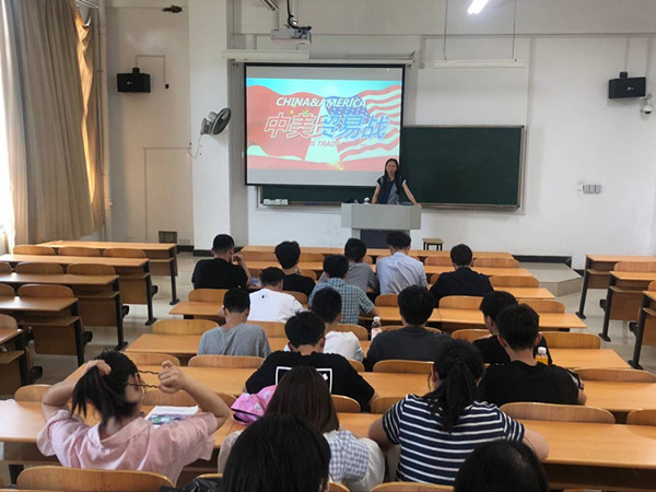 为资助国际教育学院学生相识中美商业摩擦的历史和爆发泉源,,,,,理性看待近期中美商业敏感话题,,,,,我院约请马克思主义学院陶爱萍先生于6月13日下昼15:00在教学楼3106课堂为我院学生开展题为“中美商业战”的专题讲座。。。。。