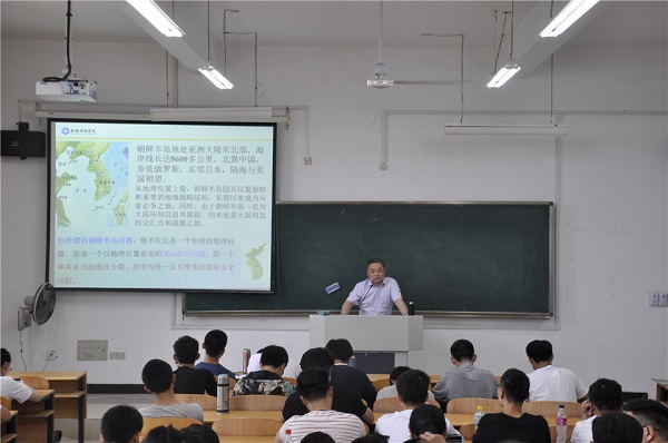 5月30日下昼1点30分,,,,,机电工程学院在3202课堂开展了一场关于朝鲜半岛与东亚时势未来走向的形势与政策讲座。。。。。。讲座由马克思主义学院吴锦旗先生主讲。。。。。。