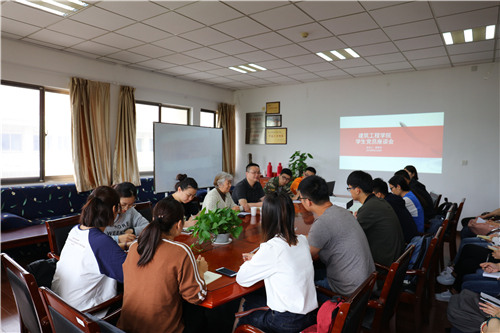 为施展老同志在学生综合素质教育的起劲作用,,,,,增强老同志与青年学生之间的联系,,,,,修建工程学院关工委于2018年5月25日在工科楼B502举行学生党员座谈会。。。。。。。修建工程学院原党总支书记郝秀华应邀出席座谈会,,,,,学院党总支副书记张乐乐、向导员陈烨、学生党员和生长工具加入了本次座谈。。。。。。。