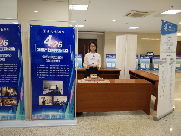 5月16日,,,,,,外国语学院郭紫妍、殷圆圆两名同砚代表学院“金科翻译社”加入在图书馆第二报告厅大厅举行的“416知识产权周”主题运动,,,,,,面向校向导及相关专家解说金科翻译社的组织架构以及所获效果,,,,,,获得了加入向导和专家的一致好评。。。。。