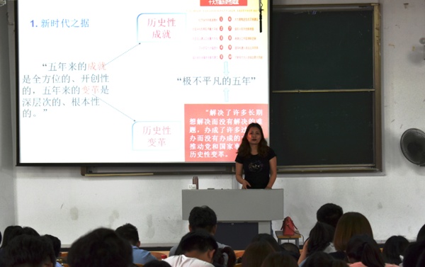 2018年5月2日下昼13:30,,,,,,,质料工程学院在7300课堂举行“中国特色社会主义的新航向——学习党的十九大精神”专题讲座。。。。。。。本场讲座特邀马克思主义学院董娜先生主讲。。。。。。。