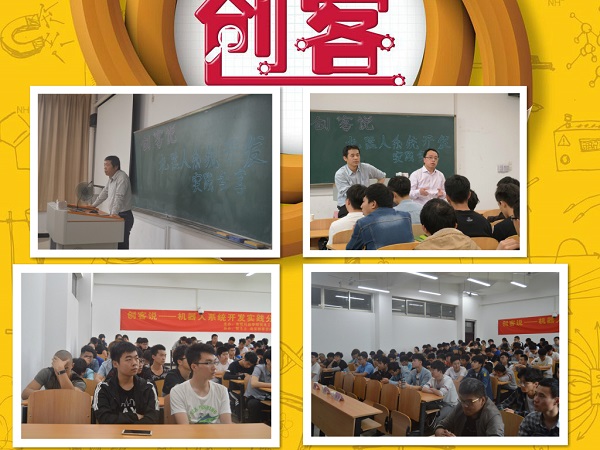 为勉励学生开拓立异、作育学生的立异头脑能力和实践能力,,,,,,,,机电工程学院于4月21日上午10点在3202开展了机械人系统开发实践讲座。。。。。。此次讲座特邀中国创客空间同盟理事长郑岩峰、南京百邻悦科技效劳有限公司总司理吉星和机电工程学院实验中心主任周洪先生。。。。。。我院近百名机械人喜欢者聆听了本次“创客说”讲座。。。。。。