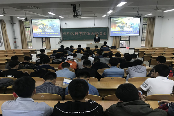 为起劲响应国家征兵的招呼,,,,,,牢靠国防建设,,,,,,一直为军队注入新鲜血液,,,,,,2018年4月10日晚18时,,,,,,动科学院于图教楼B105举行征兵发动大会。。。。。。17级向导员吴旖旎先生主持本次大会,,,,,,16、17级男生踊跃加入。。。。。。