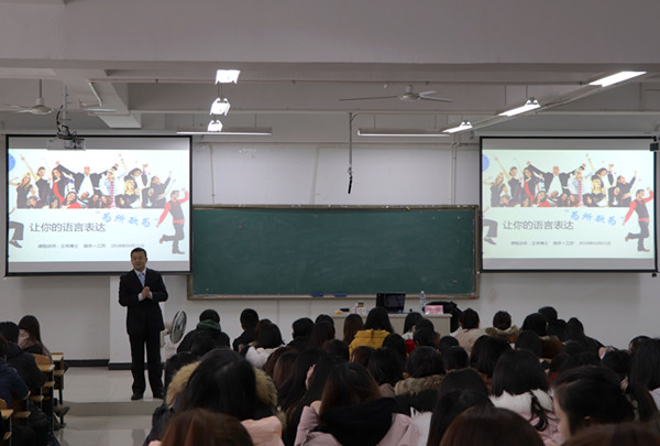 你是否曾为自己语言表达不流通而懊恼???????你是否有过在众人眼前无法自若讲话的尴尬时势???????为了资助同砚们挣脱语言表达的恐惧,,,,,增强语言条理性和说服力。。。。。。3月21日14:00,,,,,人文学院在幕府校区图教楼B305,,,,,约请了学习运动设计导师、华东师范大学教育学博士王伟,,,,,为同砚们带来了主题为“高效表达——让你的语言为所欲为”的讲座。。。。。。人文学院秘书系副主任吴静和全院近百名同砚加入了此次讲座。。。。。。
