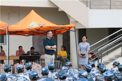 军训场上的新生们一个个身姿挺秀,,,,,卯足了劲头,,,,,展现了年轻人起劲向上、受苦耐劳的精神风貌。。。。。。。沈书记代表院向导表达了对新生们的体贴,,,,,赞扬了新生们在军训时代所展现的坚韧不拔的优良品质,,,,,并对带训教官体现谢谢。。。。。。。学院向导的体贴鼓舞了新生们的斗志,,,,,同砚们将以更高昂的姿态迎接接下来的训练。。。。。。。随后,,,,,学院向导及新生向导员为新生们发放慰问品表达真挚的祝福。。。。。。。