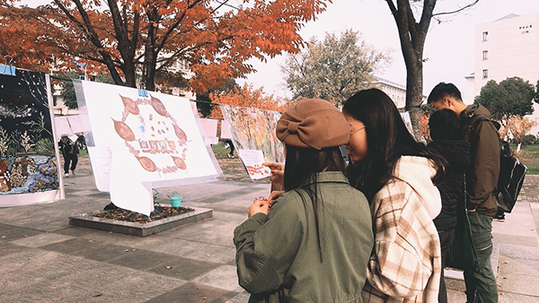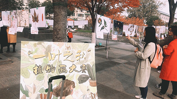 为提高同砚们的下手能力,,,,,提升同砚们的艺术素养,,,,,2018年11月22日中午,,,,,园艺园林学院在图教楼门口举行植物画大赛作品展出。。。。。。。