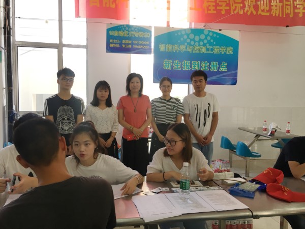 2018年8月29日,,,,,,,,智控学院2018级专转本新生报到事情在南区食堂举行。。。。。智控学院党总支书记戴典芬,,,,,,,,学院向导员段蕊、张亮、张玉株,,,,,,,,新生班主任赵国树加入了此次迎新事情。。。。。