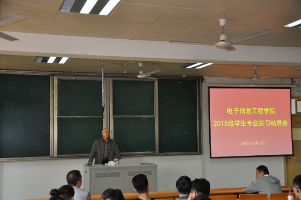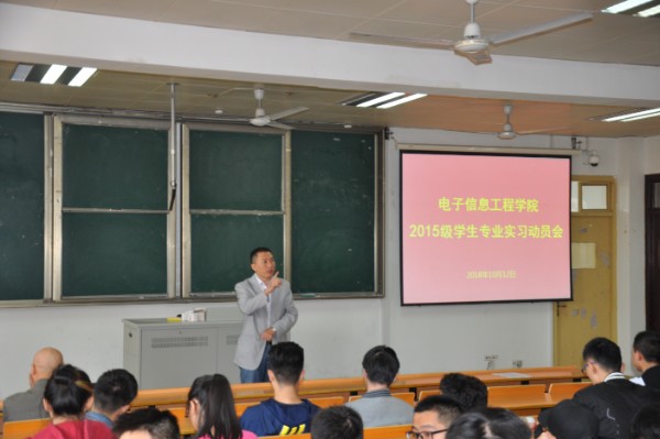 10月12日中午,,,,,,,电子信息工程学院在1232课堂召开2015级学生专业实习发动会。。。。。。。。院党总支副书记王正昱(主持事情)、副院长徐志国出席聚会并讲话,,,,,,,专业实习带队先生和15级学生加入聚会。。。。。。。。