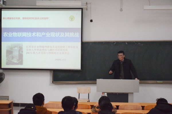 2018年12月12日下昼1点30分,,,,,,,智控学院“农业物联网手艺和工业现状及其挑战”讲座在3103课堂举行,,,,,,,主讲人为东南大学博士生导师陈俊杰教授,,,,,,,智控学院物联网西席江煜先生出席了此次讲座,,,,,,,16、17物联网专业学生聆听了讲座。。。。。。。