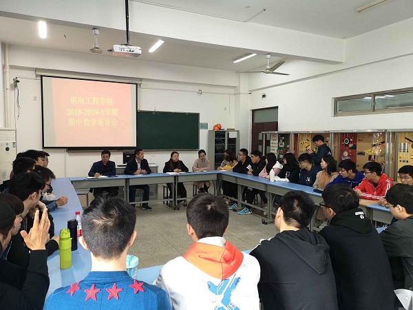 为进一步建设优良学风,,,,,,,增进我院师生间交流相同及教学刷新,,,,,,,机电工程学院在工科楼C305召开了2018-2019学年第一学期期中教学座谈会。。。。。。机电工程学院院长鞠全勇、党总支副书记张蓉、副院长于继明、向导员高琪出席本次聚会,,,,,,,16电气工程及其自动化(3+4)班全体学生参加了此次座谈。。。。。。聚会由党总支副书记张蓉主持。。。。。。
