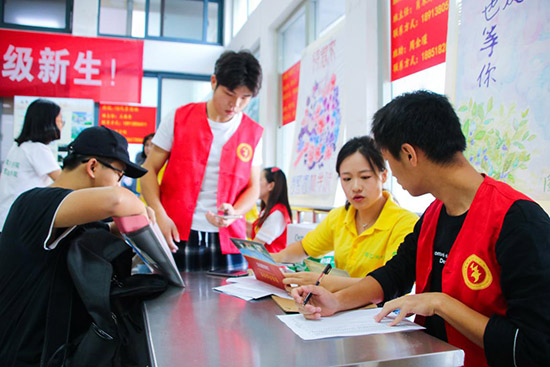 9月7号下昼,,,,,,,,值班安排和食堂各项安排事情提前准备停当,,,,,,,,八号一早事情职员及自愿者凭证值班表各司其位,,,,,,,,有条不紊地迅速投入事情。。。。。礼仪热情高涨,,,,,,,,耐心详尽地引路答疑;;;;;学长们自动起劲地上前搬运行李,,,,,,,,送新生至学生宿舍;;;;;拍摄职员往返于各个角度、方位拍摄,,,,,,,,纪录下精彩瞬间;;;;;各班班助定点期待新生签到。。。。。食堂设置绿色通道和医疗咨询所在,,,,,,,,专设先生举行现场助学借贷的答疑治理,,,,,,,,资助经济难题的学生顺遂入学。。。。。别的,,,,,,,,学校新设“金科青年幸福照相馆”,,,,,,,,免费替新生照相留念。。。。。午后,,,,,,,,新生陆续报到竣事,,,,,,,,学生会拍摄留影、清洁园地,,,,,,,,至此迎新运动圆满落幕。。。。。