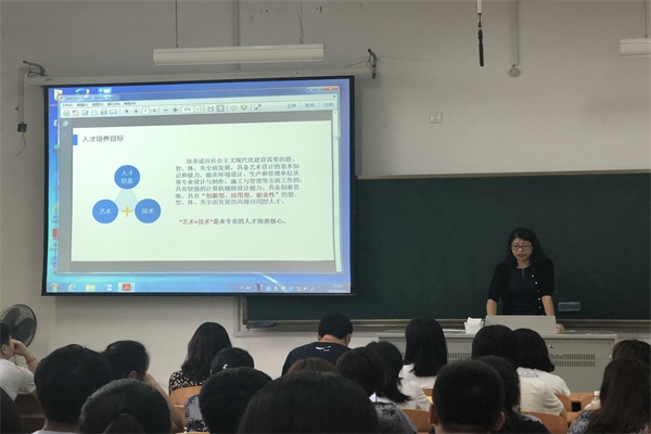 为资助新生周全相识所学专业,,,,,,,尽快顺应专业学习,,,,,,,艺术学院打扮设计、产品设计、情形艺术三个系于9月12日下昼划分在5101、5102和5103课堂开展了主题为“紧跟时代砥砺前行,,,,,,,学好专业高昂有为”的专业教育,,,,,,,各系任课西席与2018级新生一同加入。。。。。。。