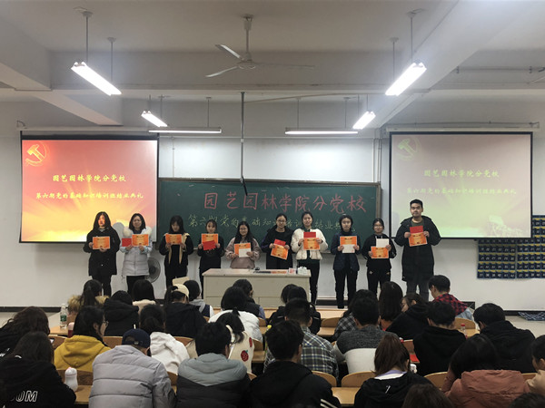 2018年10月16日-12月4日,,,,,,,,园艺园林学院分党校举行了第六期党的基础知识培训班,,,,,,,,本期培训班共有156名学员,,,,,,,,116名学员经综合审核顺遂结业,,,,,,,,其中钱智慧等11位学员被评为“优异学员”。。。。。。。。