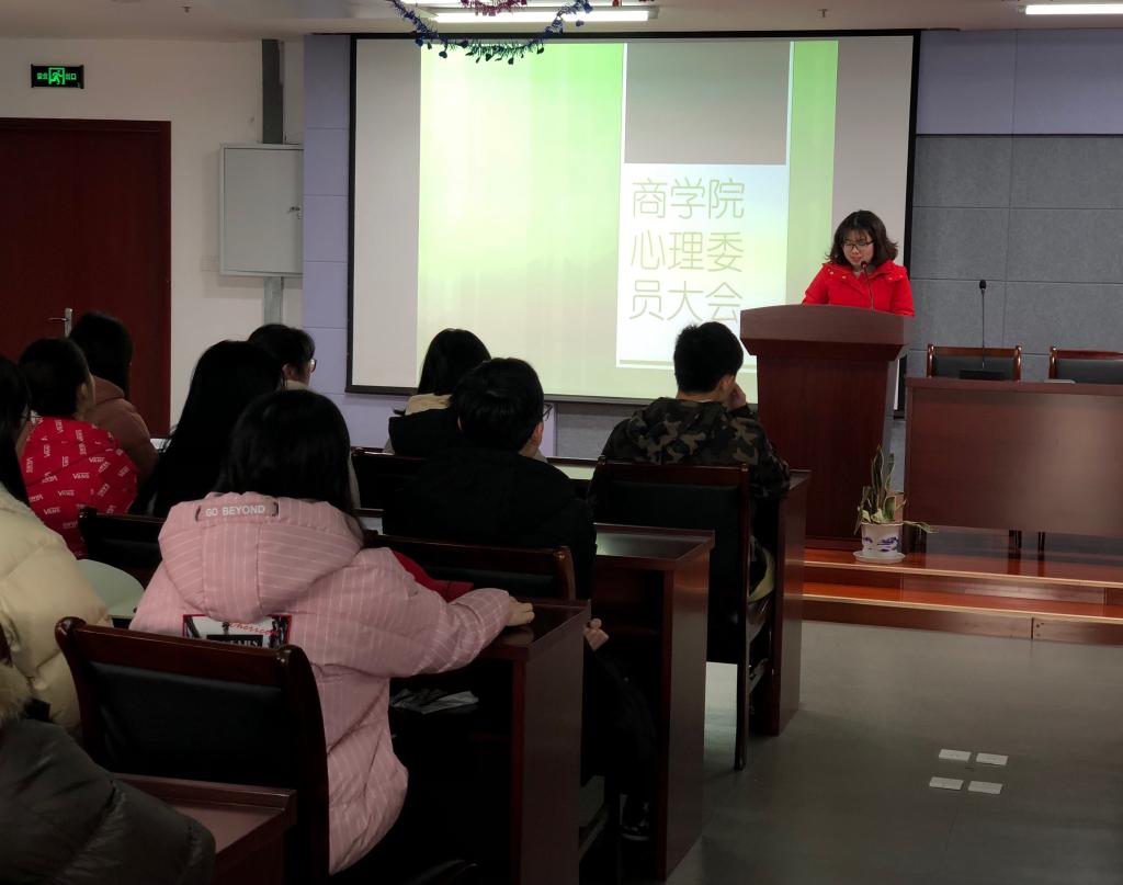 为明确心理康健教育事情形势使命,,,,,,,,提升心理事情步队事情水平,,,,,,,,商学院于3月6日下昼在科技楼3号楼313报告厅举行春季大学生心理康健教育事情培训。。。。。。商学院学工办分担心理事情向导员、国家二级心理咨询师徐冰洁先生主讲,,,,,,,,院学生会学生清静部、各班心理委员参训。。。。。。