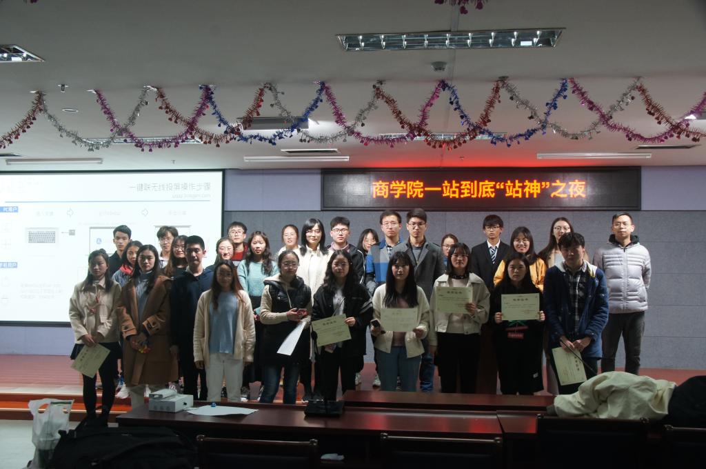 为作育学生科创精神,,,,,拓展学生综合知识面,,,,,商学院举行“一站究竟”知识竞赛。。。。。。。。竞赛决赛于3月22日在科技楼3号楼313报告厅拉开帷幕。。。。。。。。商学院学工办副主任顾磊、向导员陈婧,,,,,院团总支副书记潘玥、学生会主席周家来和学生社科联主席徐晓雨等学生干部加入为选手们助阵加油。。。。。。。。商学院学生主持队张翀、康诗雨同砚配合主持赛事。。。。。。。。