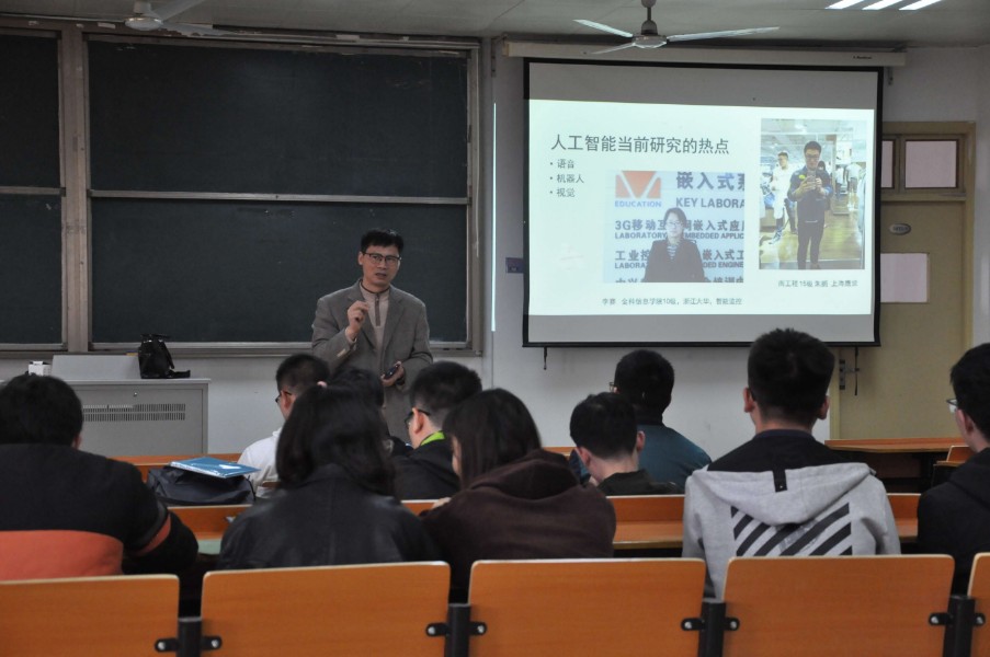 为增进本科生企业导师更好地掌握学生的特点,,,,,,,,有用提升本科生导师制实验效果,,,,,,,,4月10日下昼,,,,,,,,电子信息工程学院在教学楼1432举行了主题为“带‘电’相关专业的就业新机缘--嵌入式人工智能”讲座,,,,,,,,南京优奈特信息科技有限公司林新华先生主讲,,,,,,,,16级和18级电子信息工程专业的同砚加入讲座。。。。。
