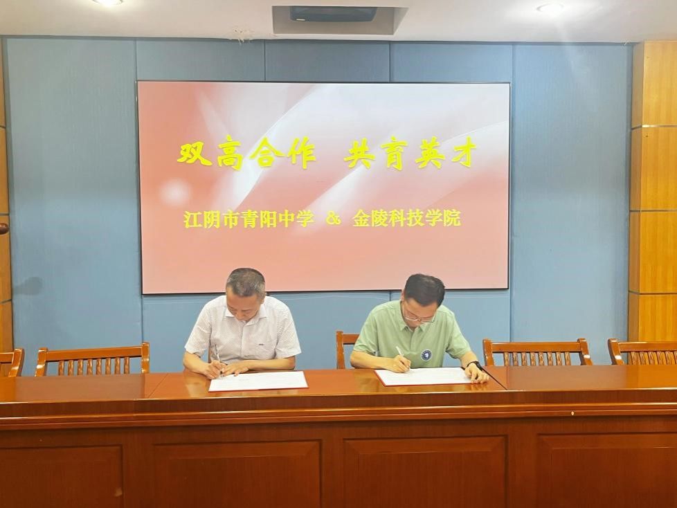 会上,,,,,,,沐阳代表学校向江阴市青阳中学递送了2023年高考录取新生的喜报;;;;;;;王池社代表学校与姚惠民签署了《看个球app官网优质生源基地相助协议书》并向江阴市青阳中学授牌“看个球app官网优质生源基地”。。。。。。。